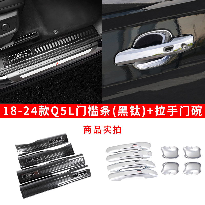 • 18-24 Q5L 임계값 스트립 [블랙 티타늄 브러시드] + 핸들 도어 볼 [실버 미러]
