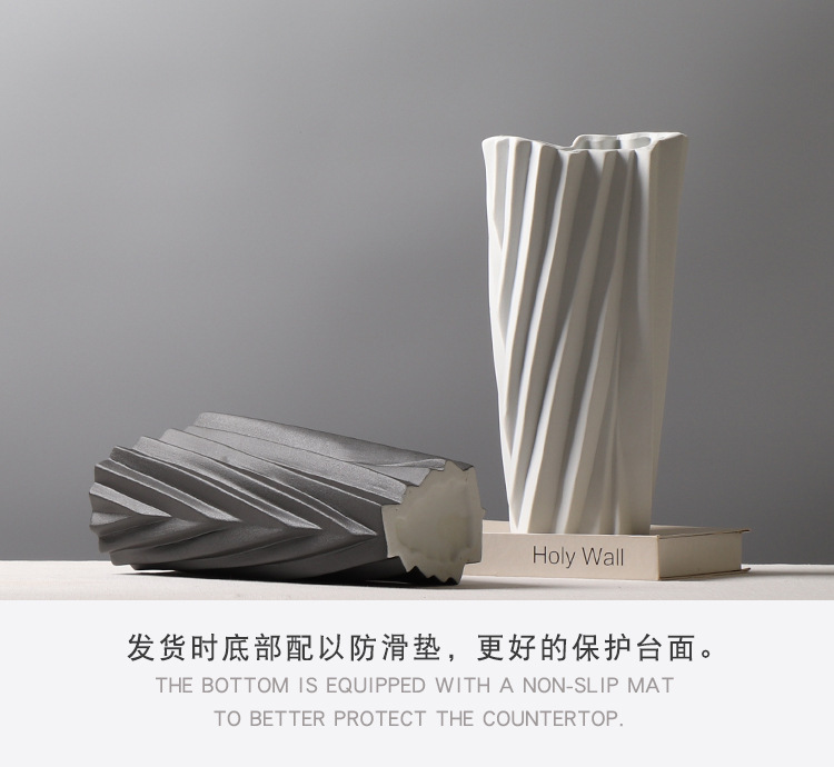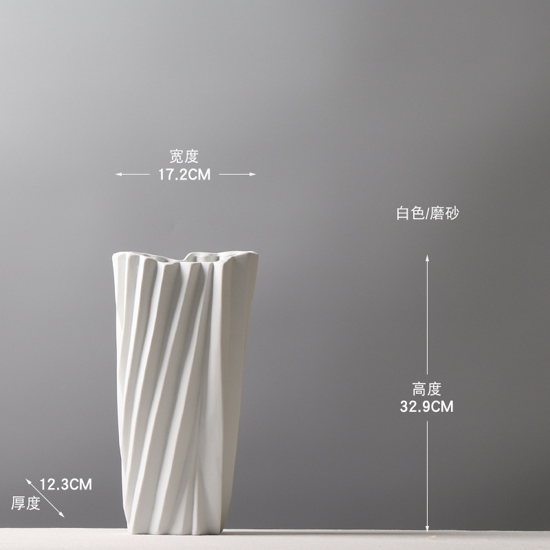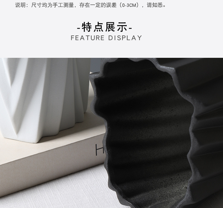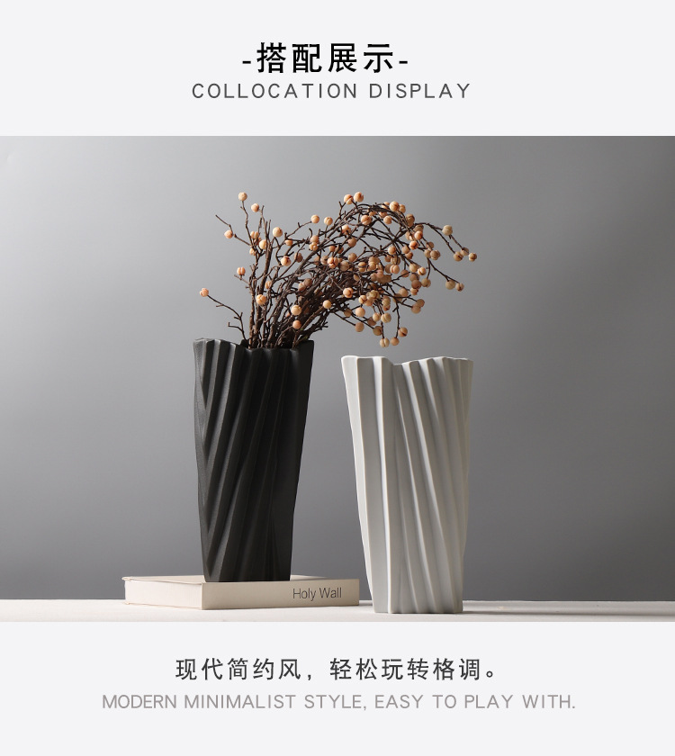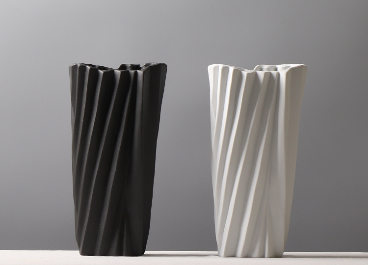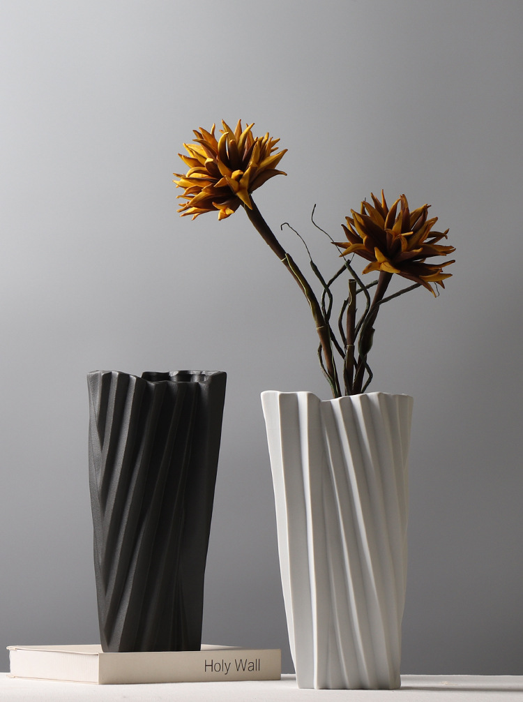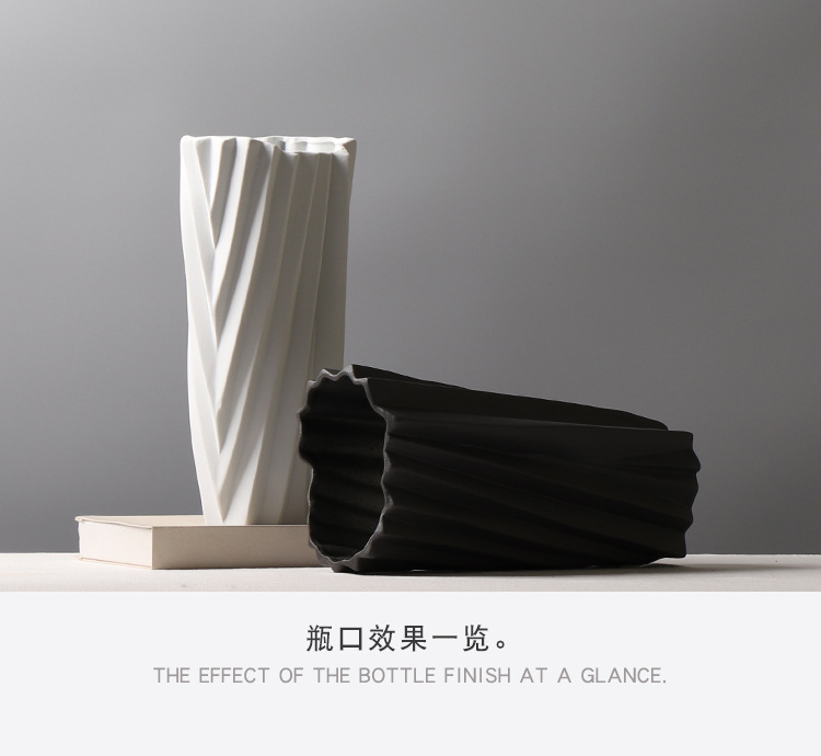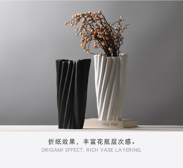 현대 간단한 서리 흑백 세라믹 꽃병 종이 접기 꽃 배열 장식 모델 룸 창조적 인 거실 공예 장식품스토어 가기