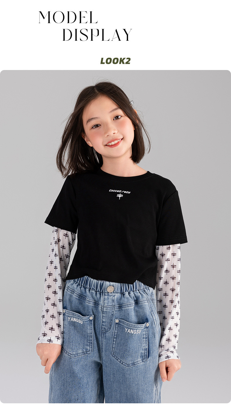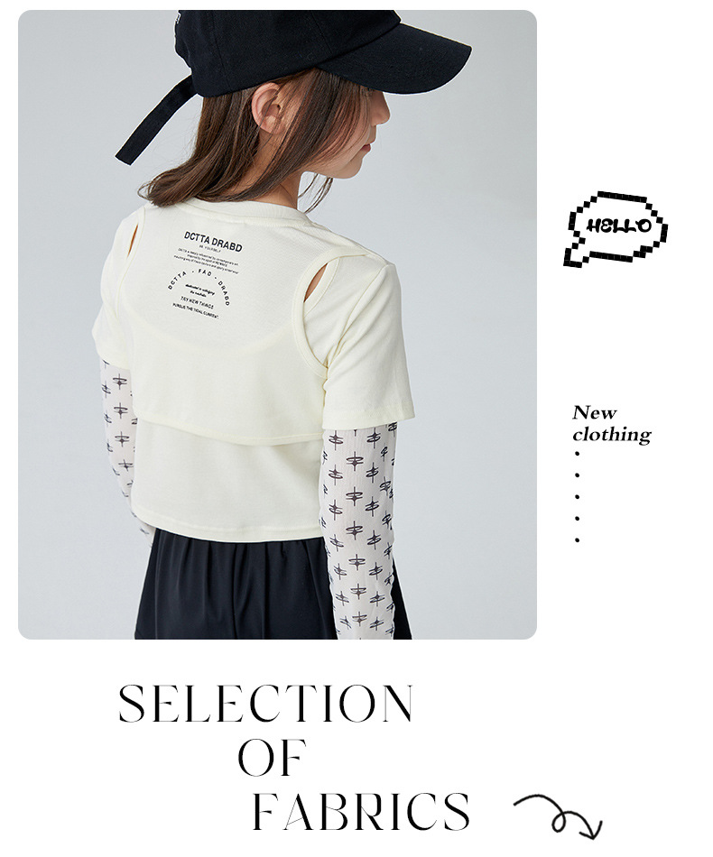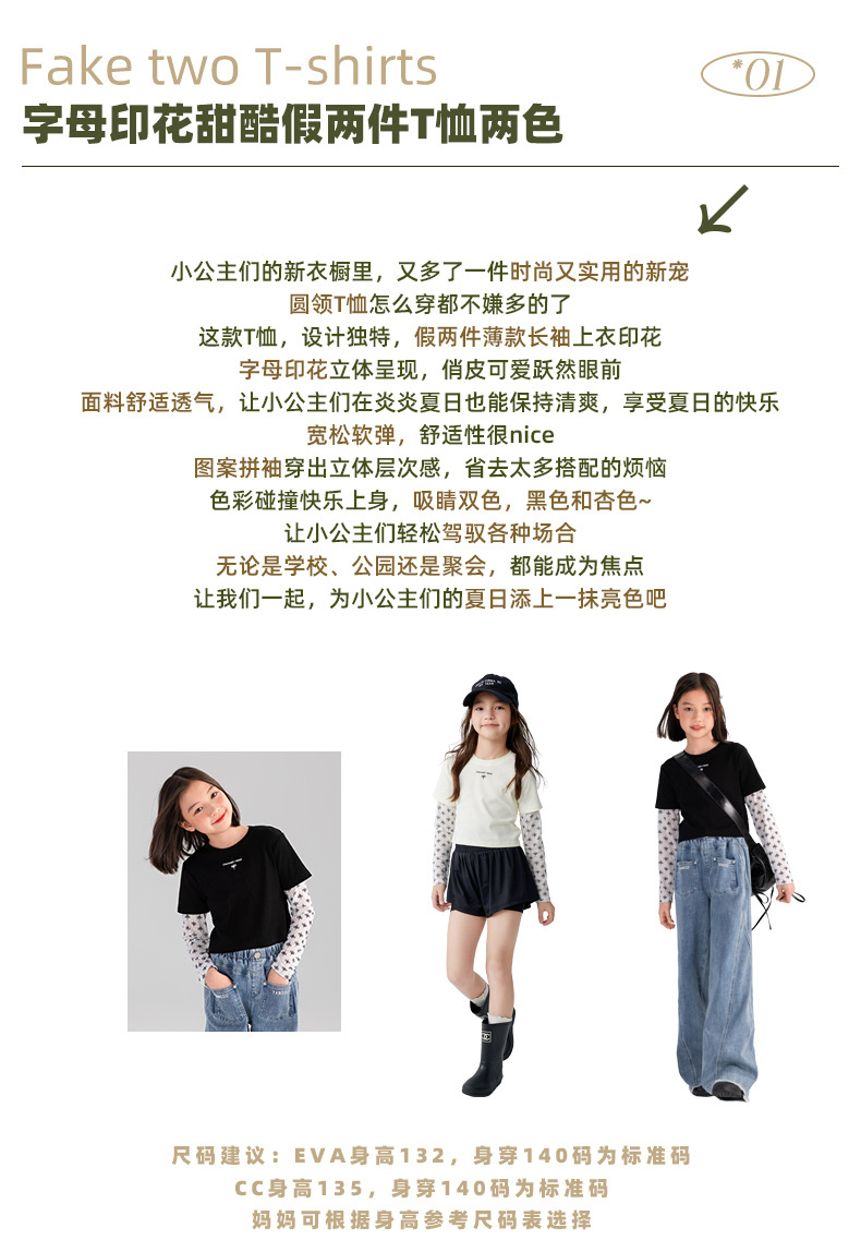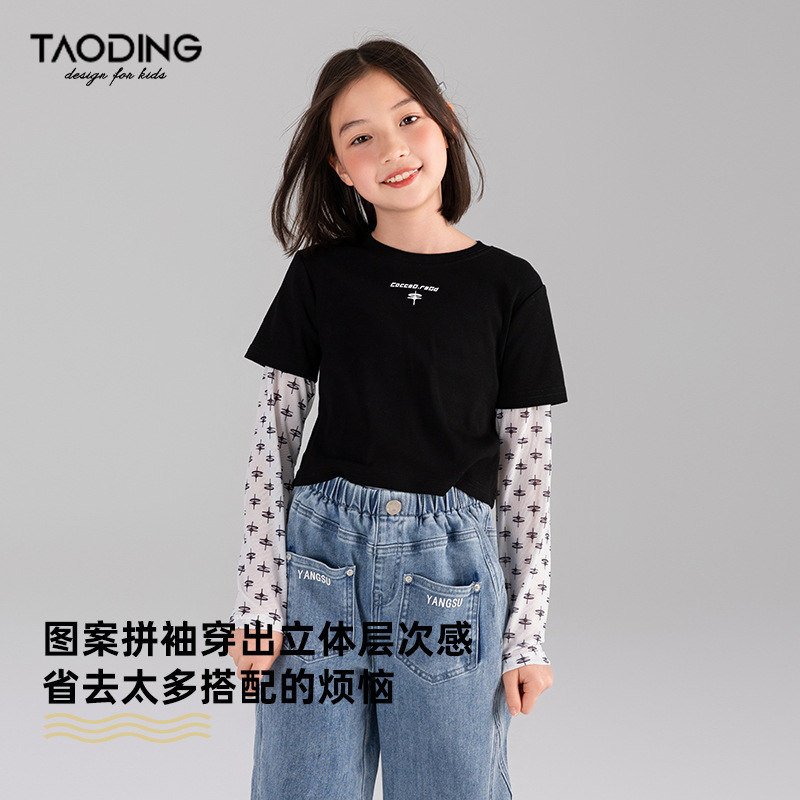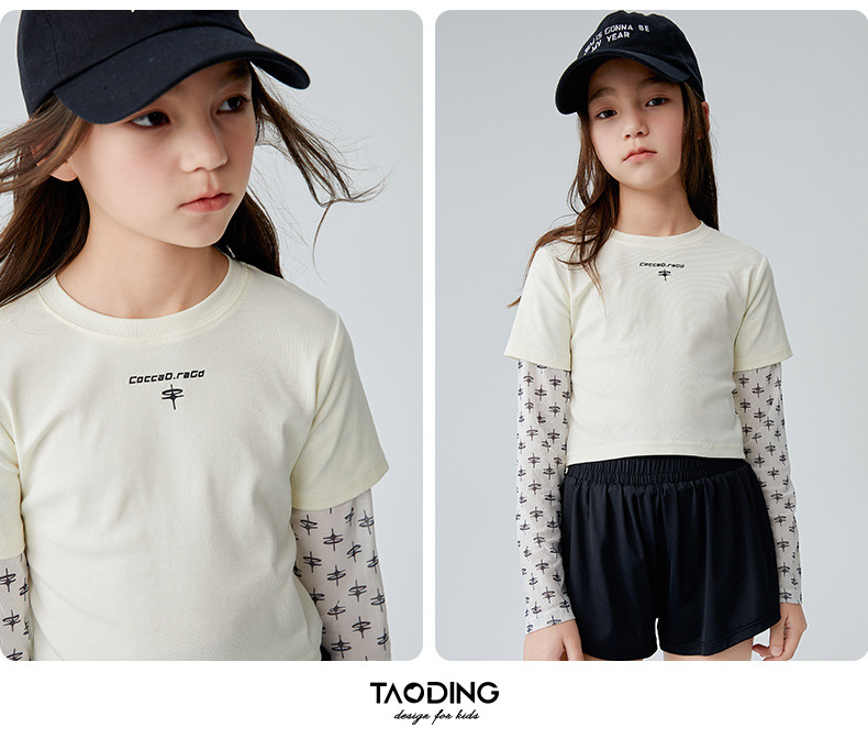 Taoding 여자 티셔츠 여름 새로운 중대형 여자 가짜 투피스 태양 보호 슬리브 라운드 넥 패턴 스플 라이스 슬리브