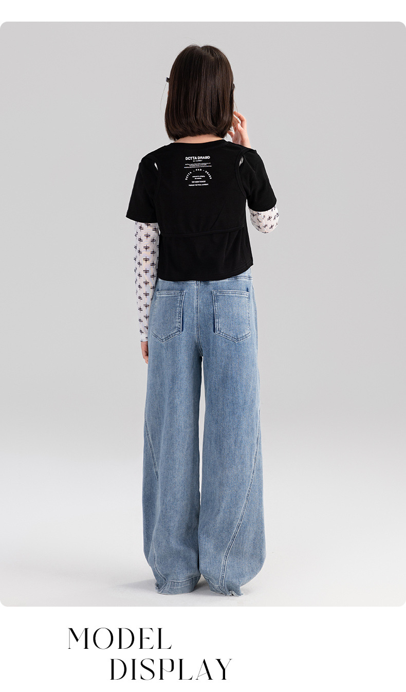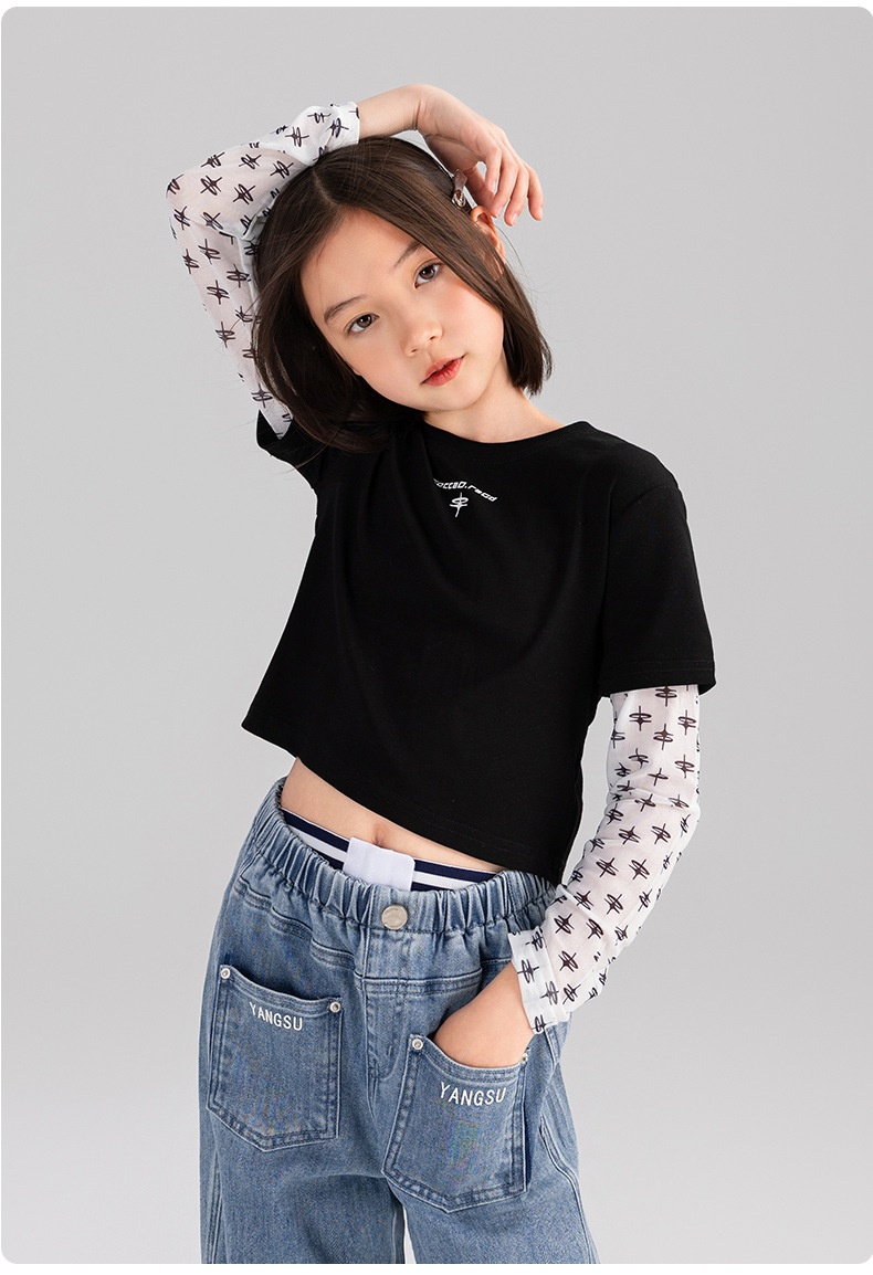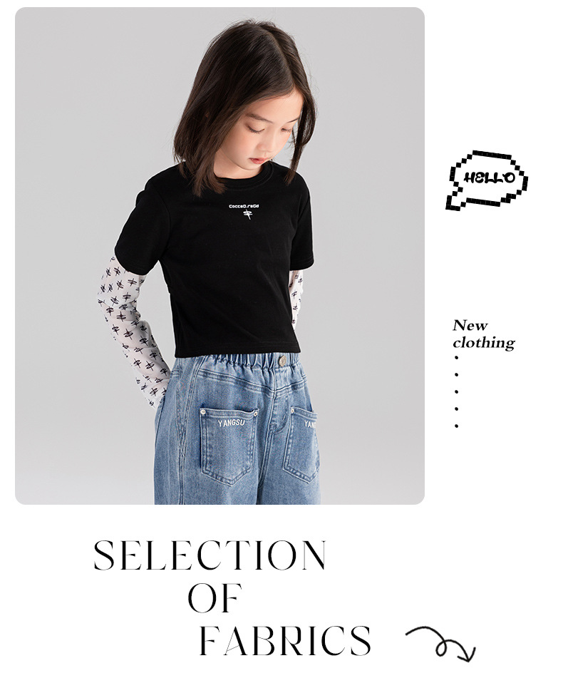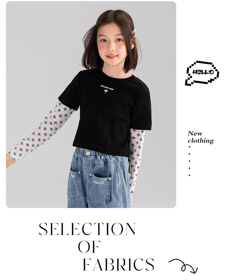 Taoding 여자 티셔츠 여름 새로운 중대형 여자 가짜 투피스 태양 보호 슬리브 라운드 넥 패턴 스플 라이스 슬리브