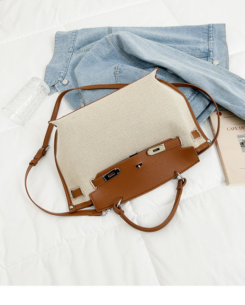 국경 간 유럽과 미국의 패션 토트 백 새로운 캔버스 여성 가방 유행 켈리 가방 대용량 컬러 대비 어깨 크로스 바디 백