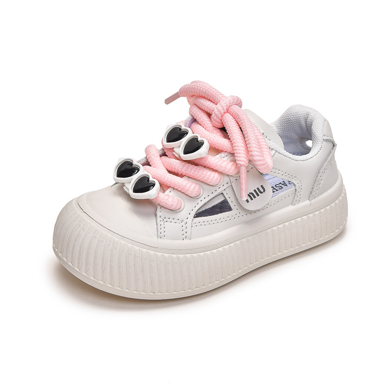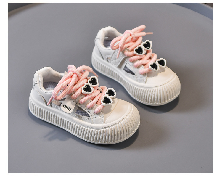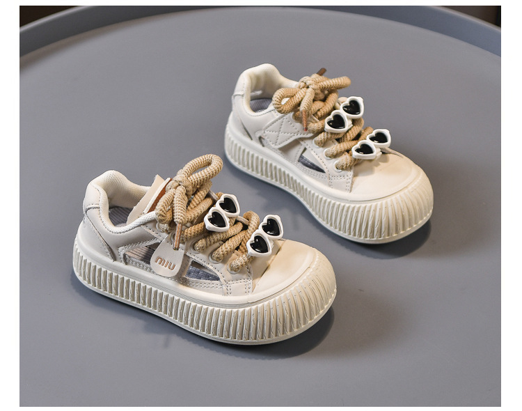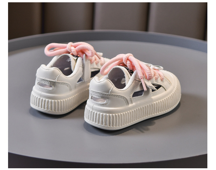 소녀 스니커즈 여름 새로운 도착 프레임 샌들 2024 미중 및 큰 어린이와 학생을위한 싱글 메쉬 할로우 화이트 슈즈 소프트 하단 로우 탑