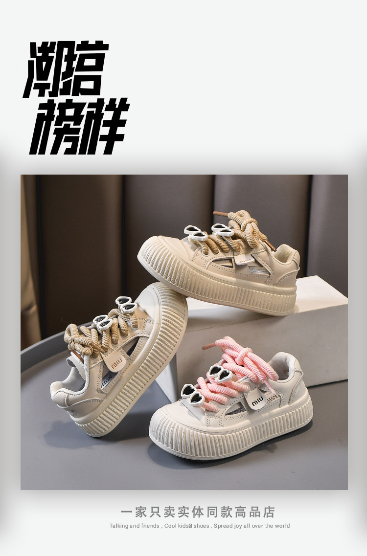 소녀 스니커즈 여름 새로운 도착 프레임 샌들 2024 미중 및 큰 어린이와 학생을위한 싱글 메쉬 할로우 화이트 슈즈 소프트 하단 로우 탑스토어 가기