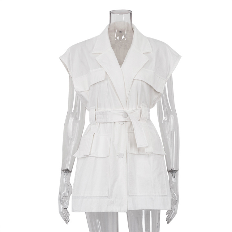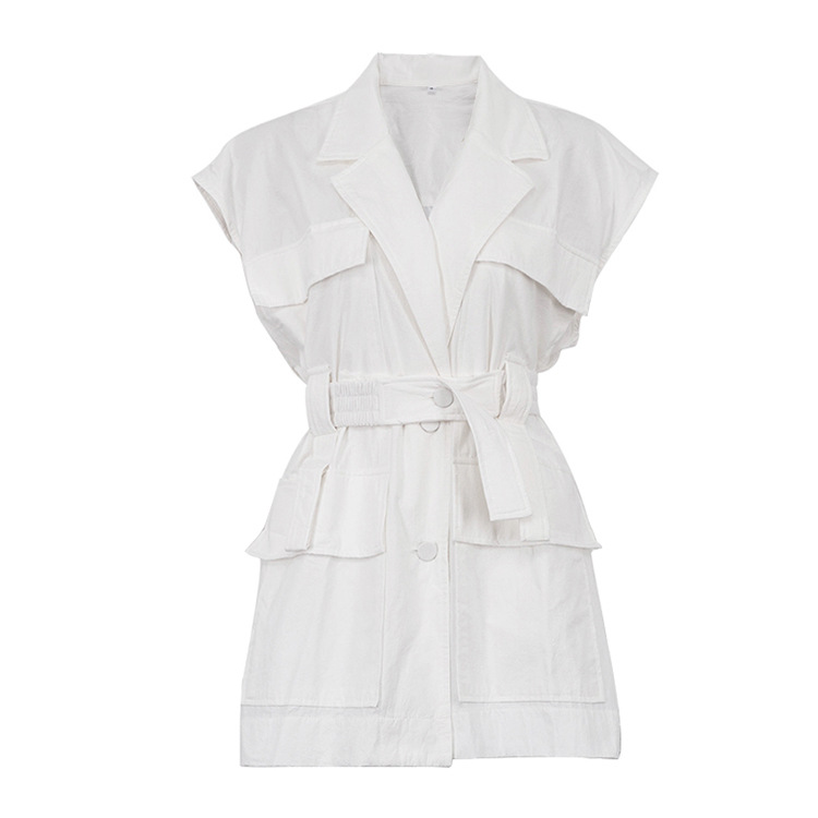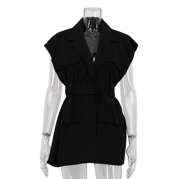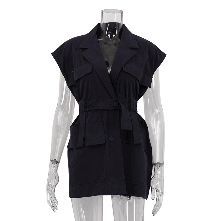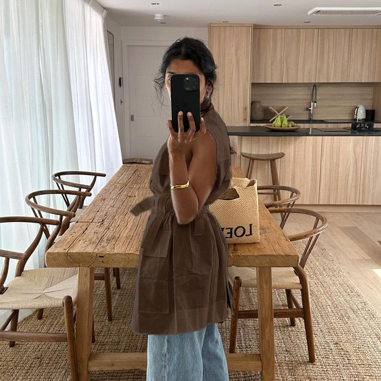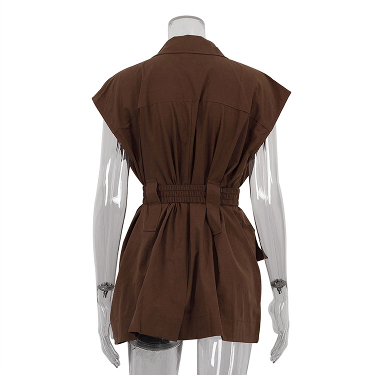 유럽 및 미국 여성 의류 2026 여름 민소매 워크셔츠 트렌디하고 패셔너블한 멀티 포켓 디자인 벨트 루즈핏 탑