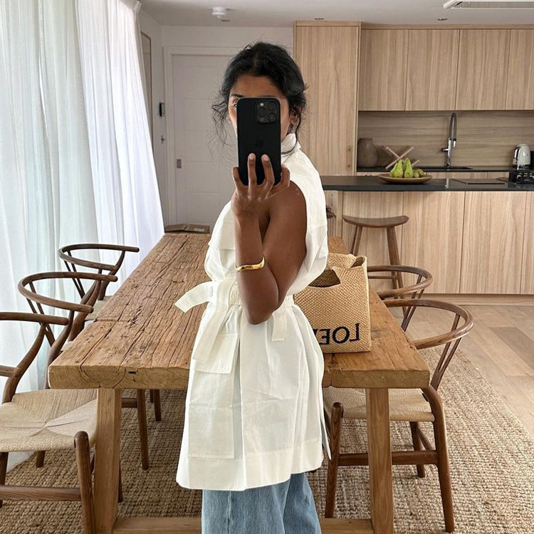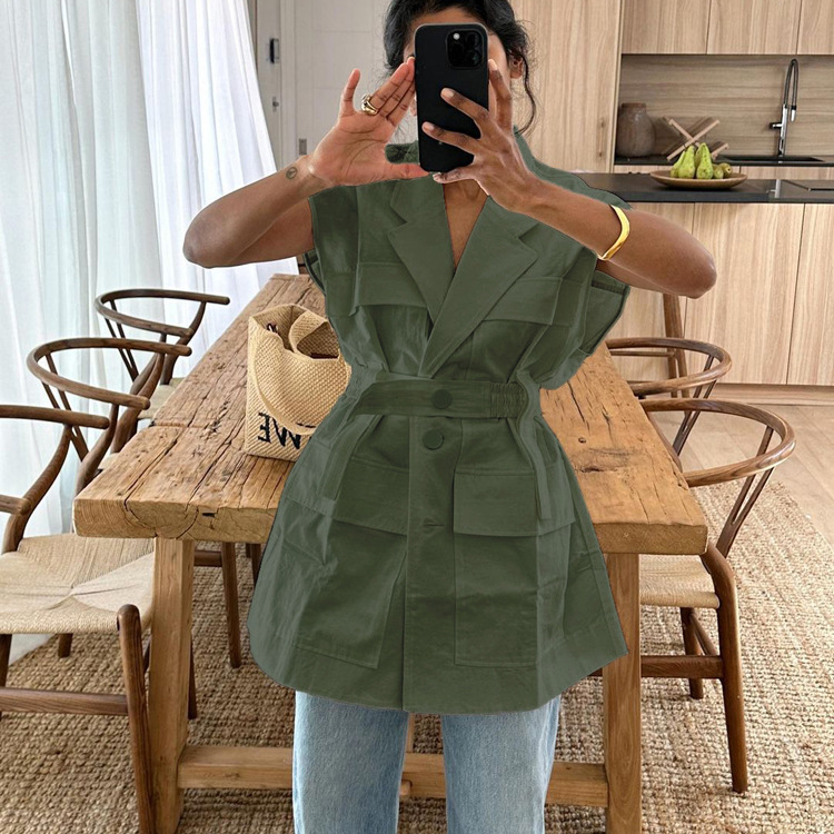 유럽 및 미국 여성 의류 2026 여름 민소매 워크셔츠 트렌디하고 패셔너블한 멀티 포켓 디자인 벨트 루즈핏 탑스토어 가기