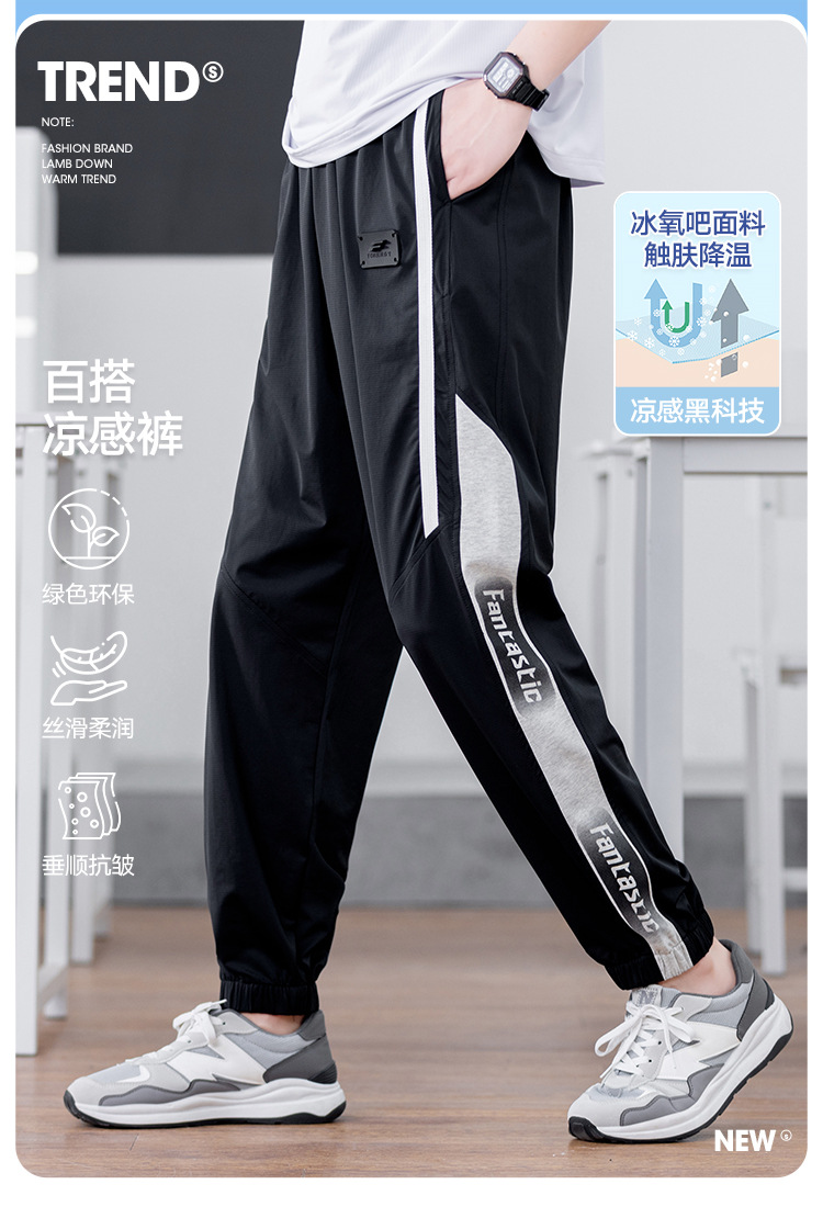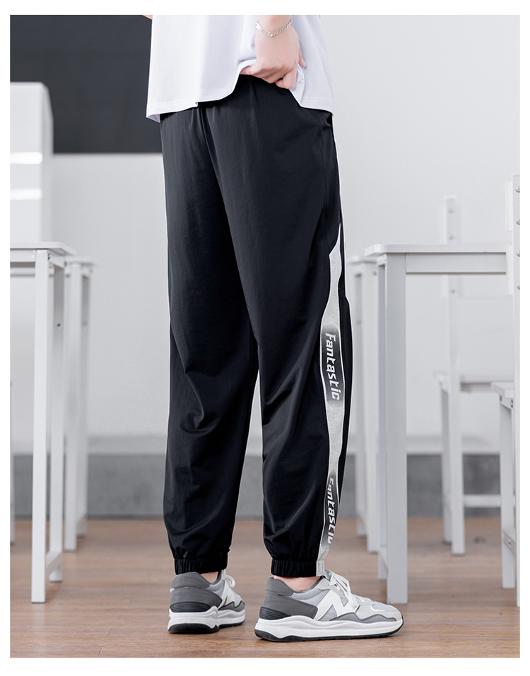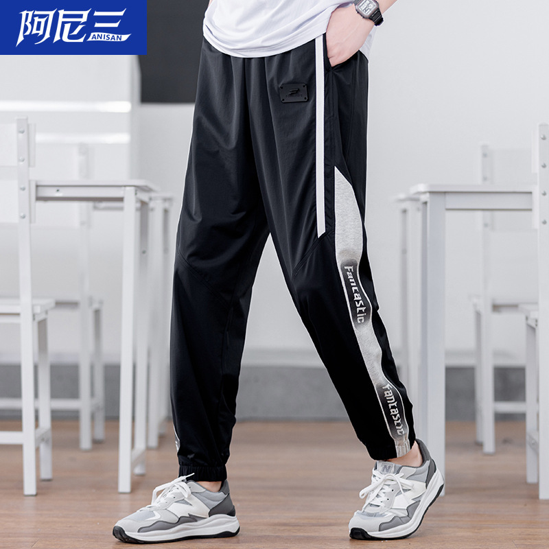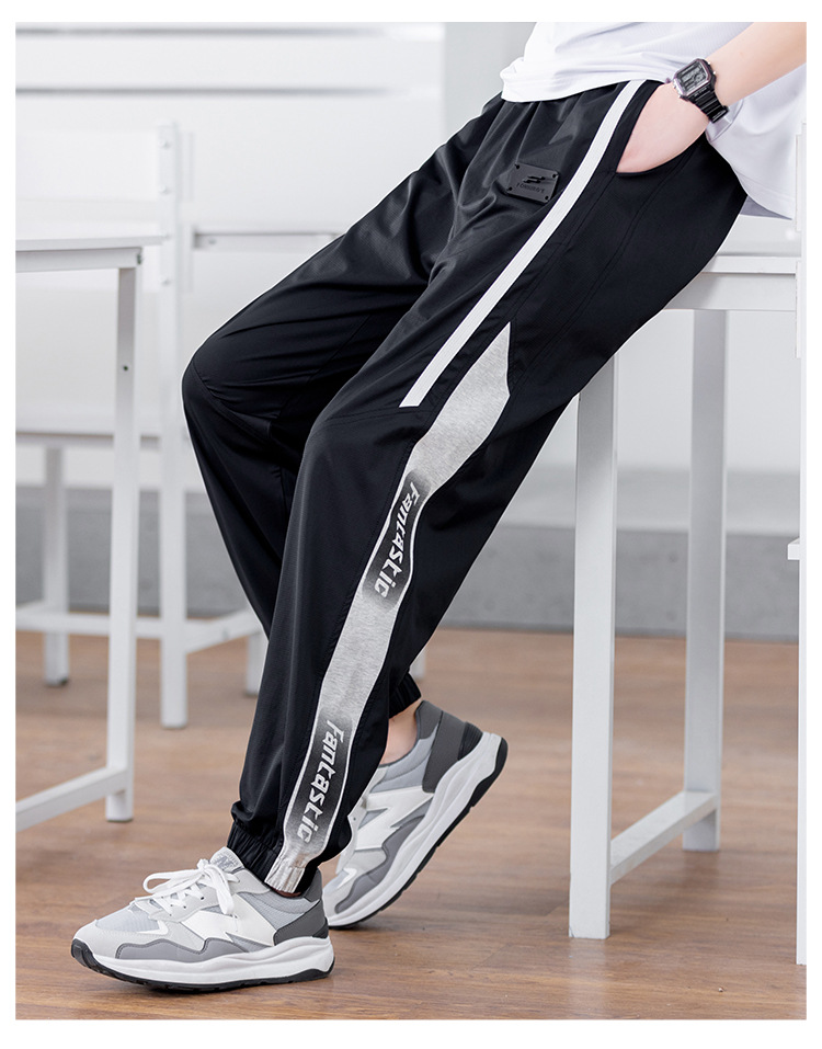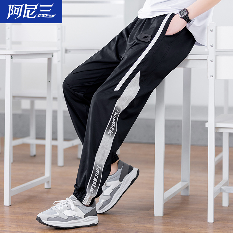 십대 아이스 실크 빠른 건조 스포츠 바지 남자 여름 얇은 유행 잘 생긴 중학교 고등학교 고등학생 캐주얼 바지스토어 가기