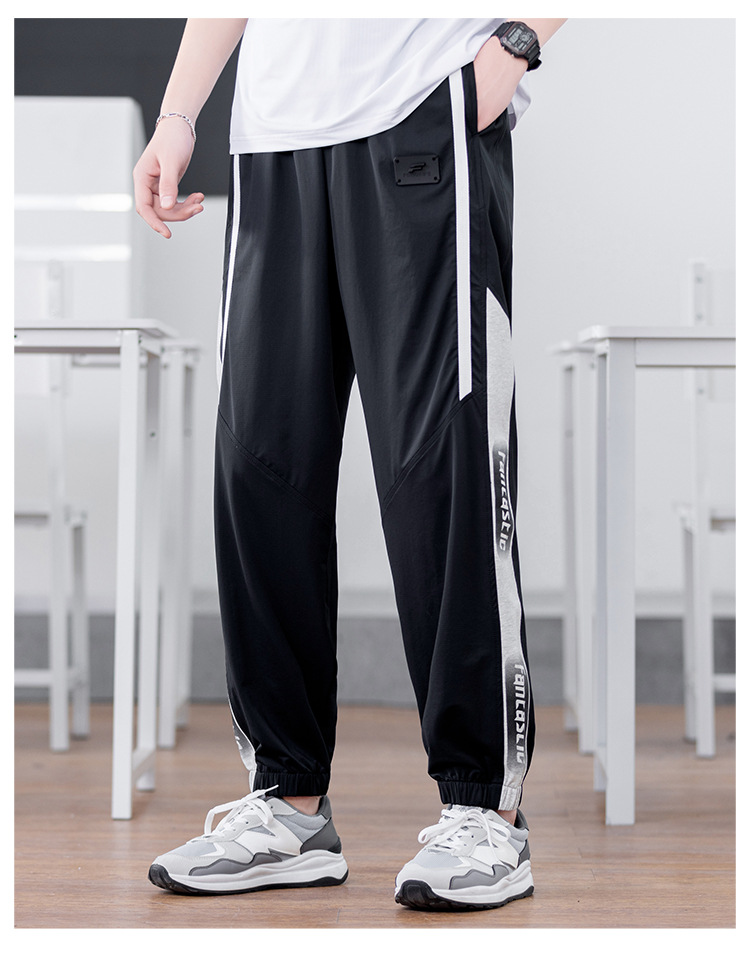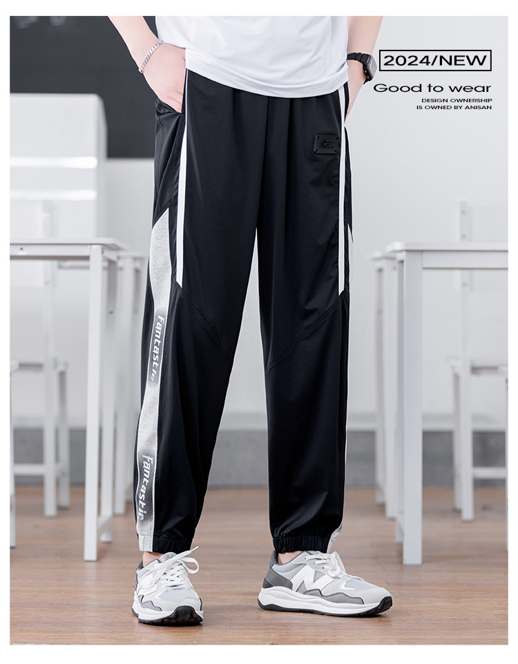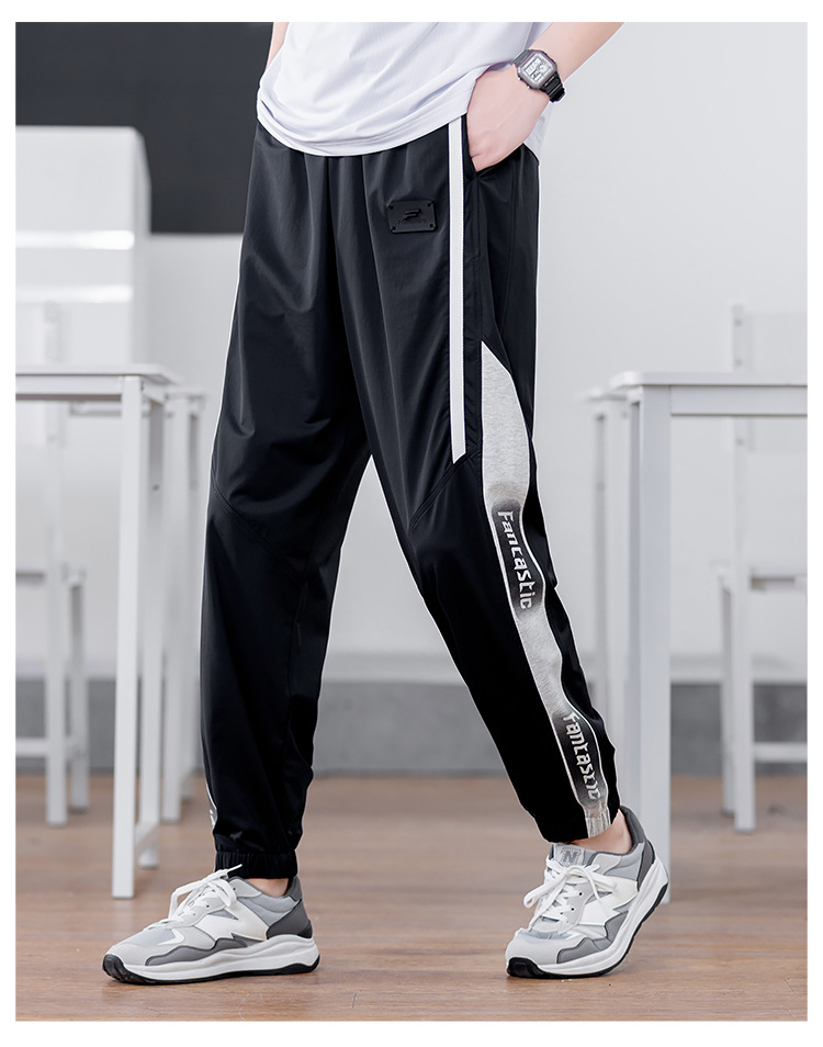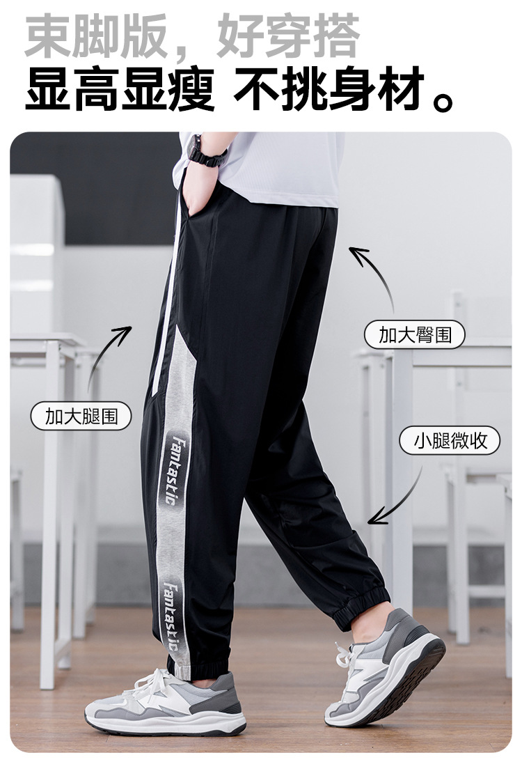 십대 아이스 실크 빠른 건조 스포츠 바지 남자 여름 얇은 유행 잘 생긴 중학교 고등학교 고등학생 캐주얼 바지스토어 가기