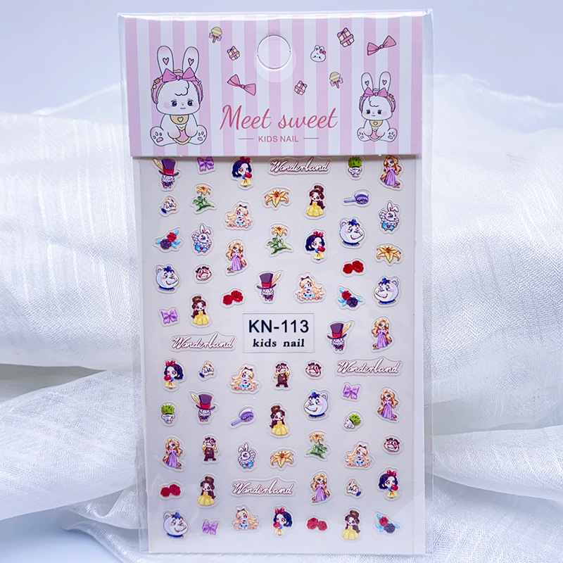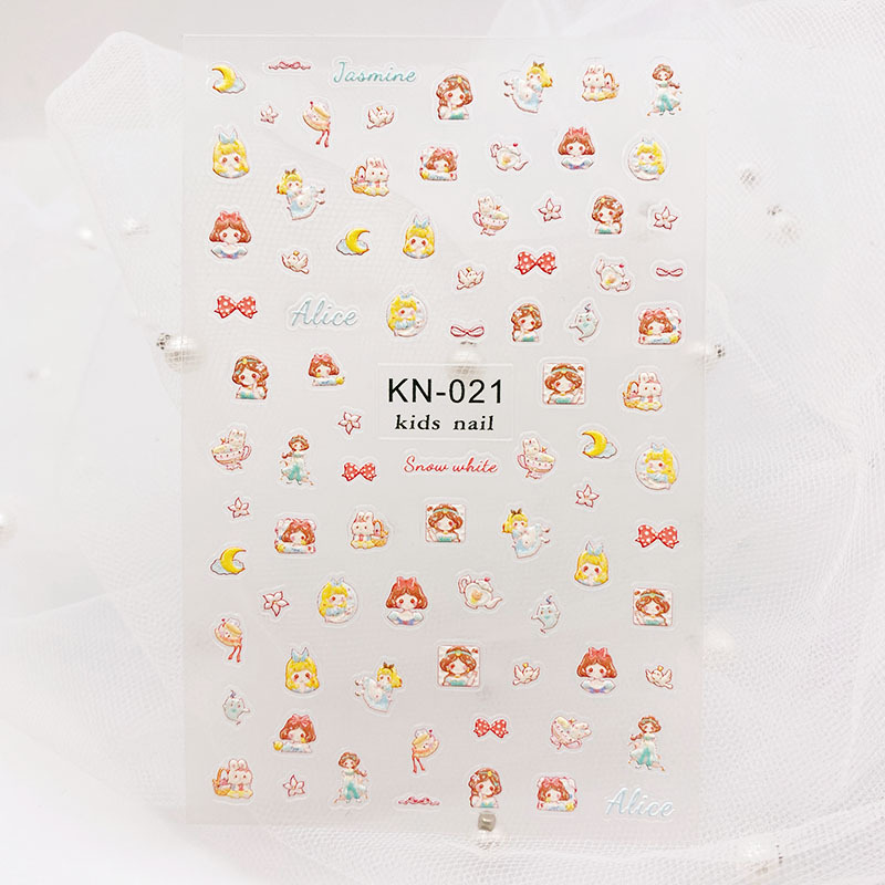 어린이 만화 냉동 아이샤 백설 공주 시리즈 5D 양각 네일 아트 스티커 산리오 네일 데칼