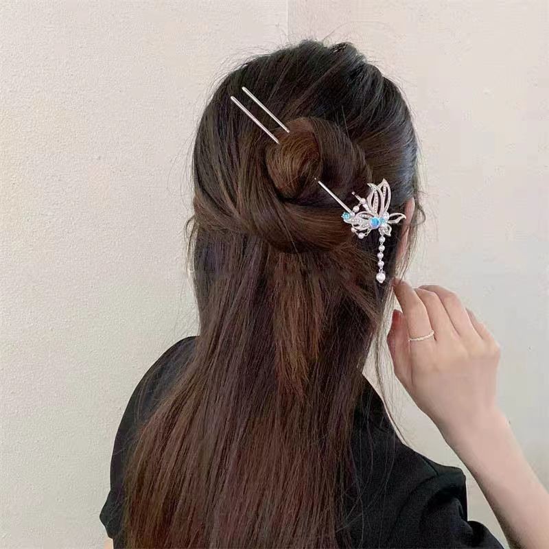새로운 중국 스타일의 U 자형 나비 머리핀 여성 틈새 성격 간단한 올 매치 헤어핀 백 헤드 볼 헤어 액세서리스토어 가기
