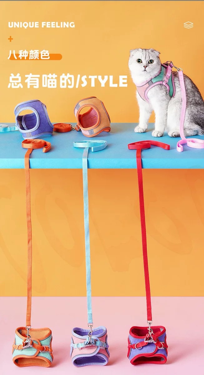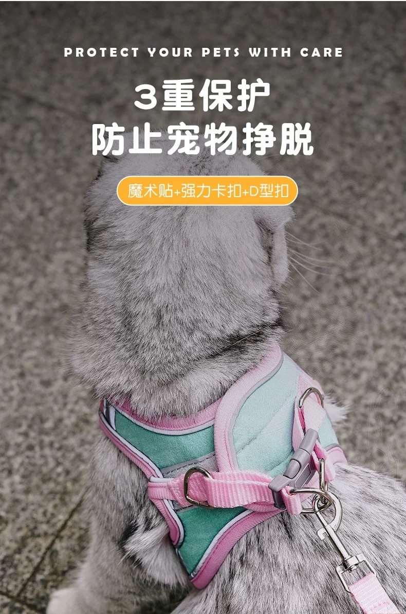 고양이 견인 밧줄 귀여운 조끼 스타일 가슴 방지 휴식없는 새끼 고양이 벨크로 안전 버클 반사 애완 동물 고양이 워킹 로프스토어 가기