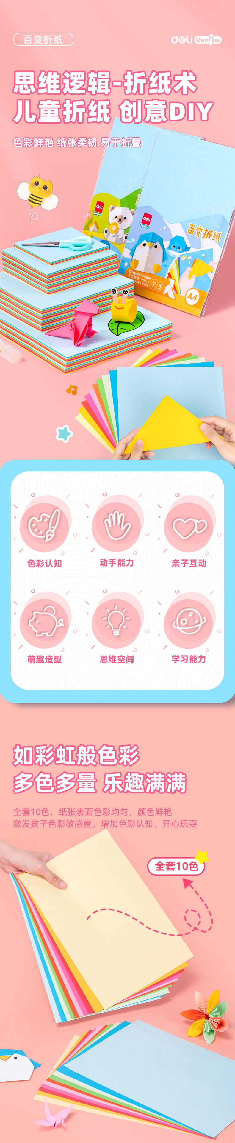 델리 YC324 종이 접기 A4-10 컬러 학생 손으로 만든 컬러 종이 창조적 인 DIY 어린이 종이 컷 접이식 종이 도매