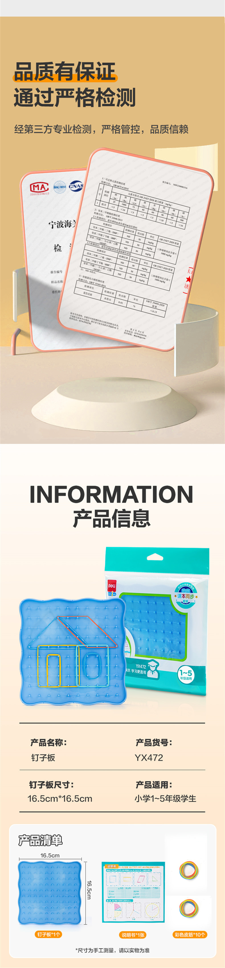 Deli YX472 네일 보드 초등학교 수학 기하학 교육 에이즈 네일 보드 초등 학생을위한 다기능 후크 네일 보드