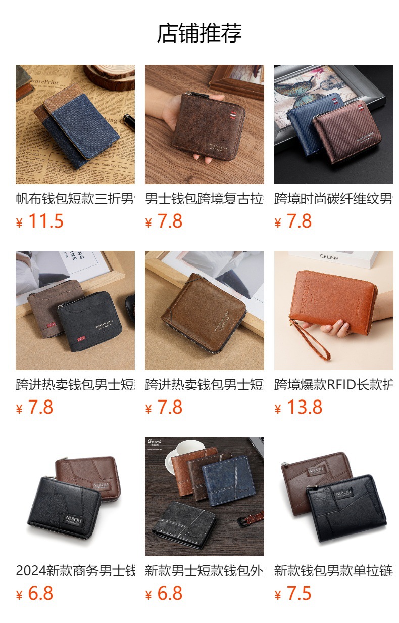 국경 간 인기 판매 지갑 남성용 짧은 스타일 유럽과 미국 복고풍 다기능 도난 방지 지갑 지퍼 동전스토어 가기