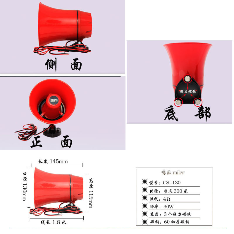 두 배 드릴 외부 확성기 녹음 경적 스탠드 프로모션 소음없는 소리 CS-130 자동차 확성기스토어 가기
