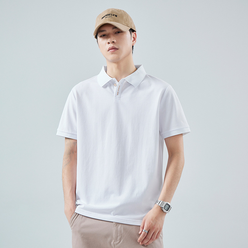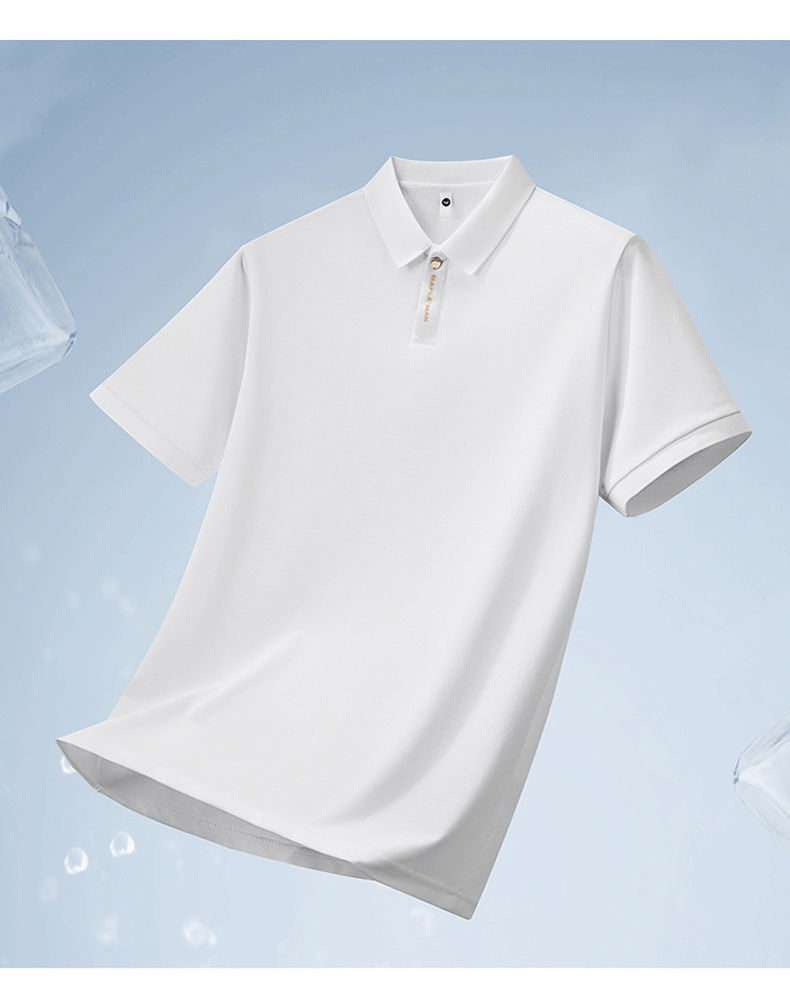 여름 새로운 도착 목 자수 아이스 반팔 폴로 셔츠 남성 비즈니스 캐주얼 올 매치 옷깃 품질 티셔츠 남성용