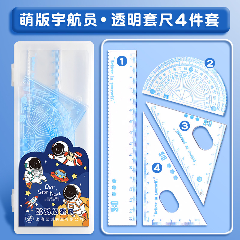 초등학생 다기능 아크릴 통치자 4 피스 세트 삼각형 통치자 통치자 각광기 시험 드로잉 특수 세트스토어 가기