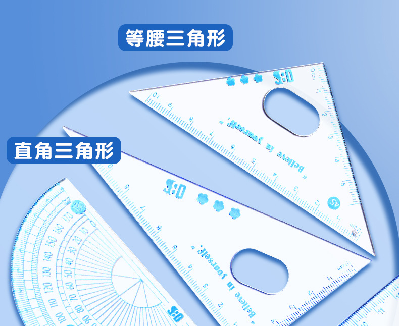 초등학생 다기능 아크릴 통치자 4 피스 세트 삼각형 통치자 통치자 각광기 시험 드로잉 특수 세트