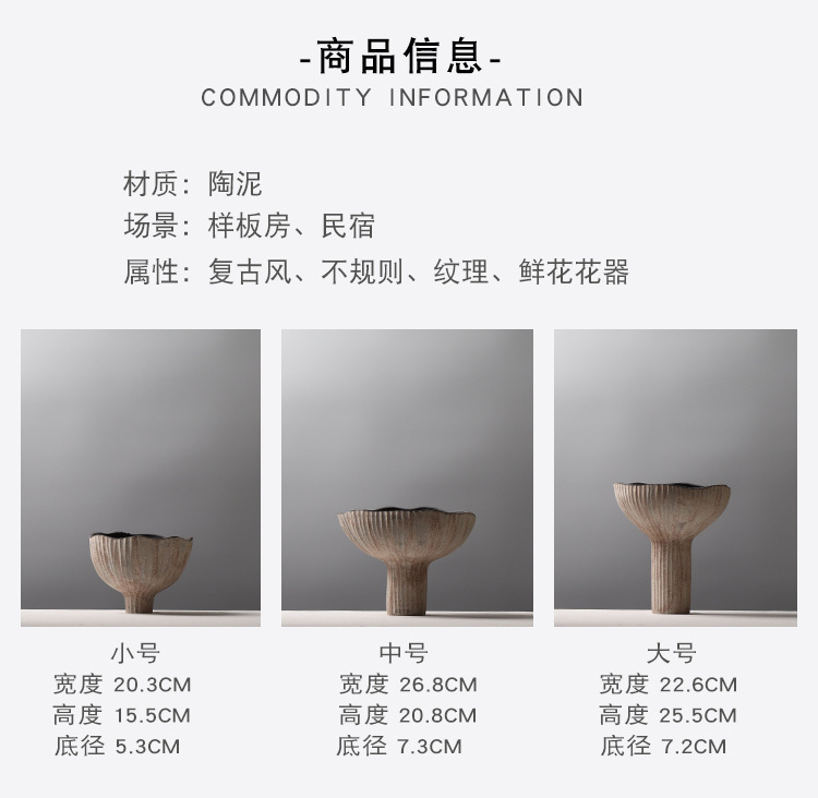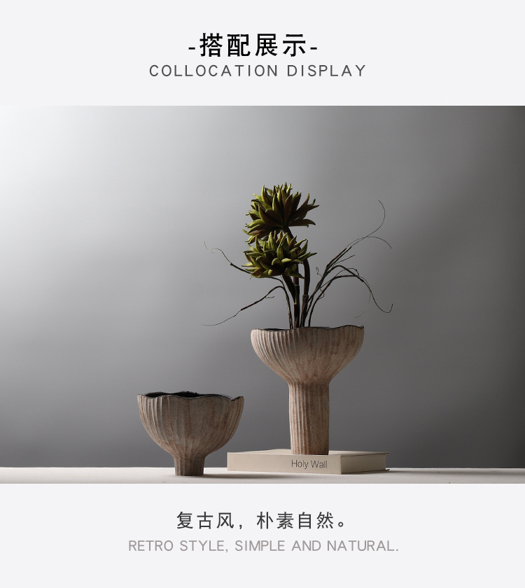 조용한 스타일 빈티지 클레이 플라워 꽃병 홈 스테이 모델 하우스 꽃 장식품 프로스트 크리에이티브 키 큰 꽃병 장식품스토어 가기