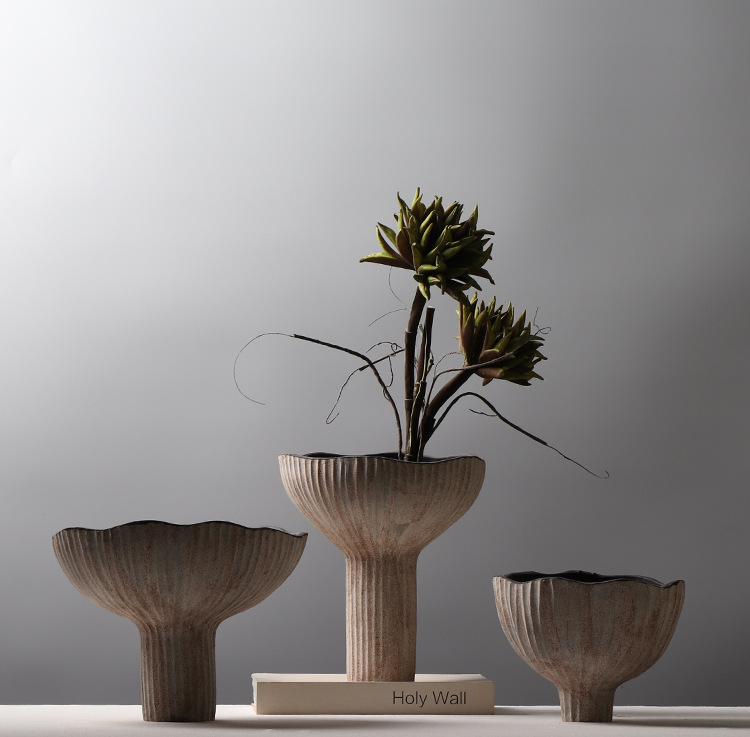 조용한 스타일 빈티지 클레이 플라워 꽃병 홈 스테이 모델 하우스 꽃 장식품 프로스트 크리에이티브 키 큰 꽃병 장식품