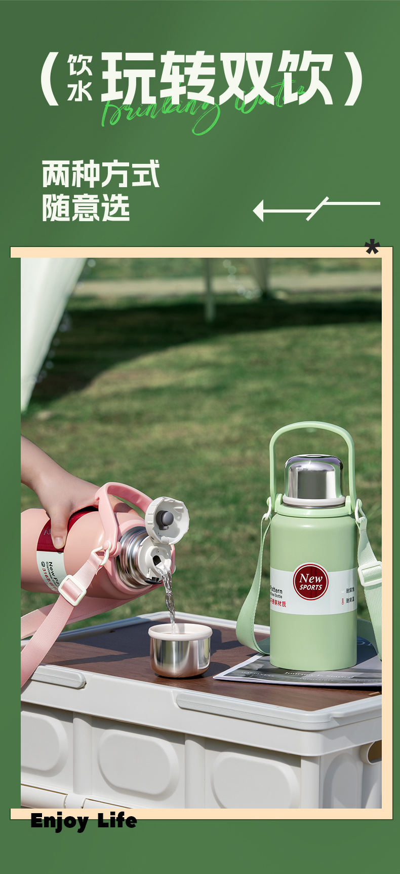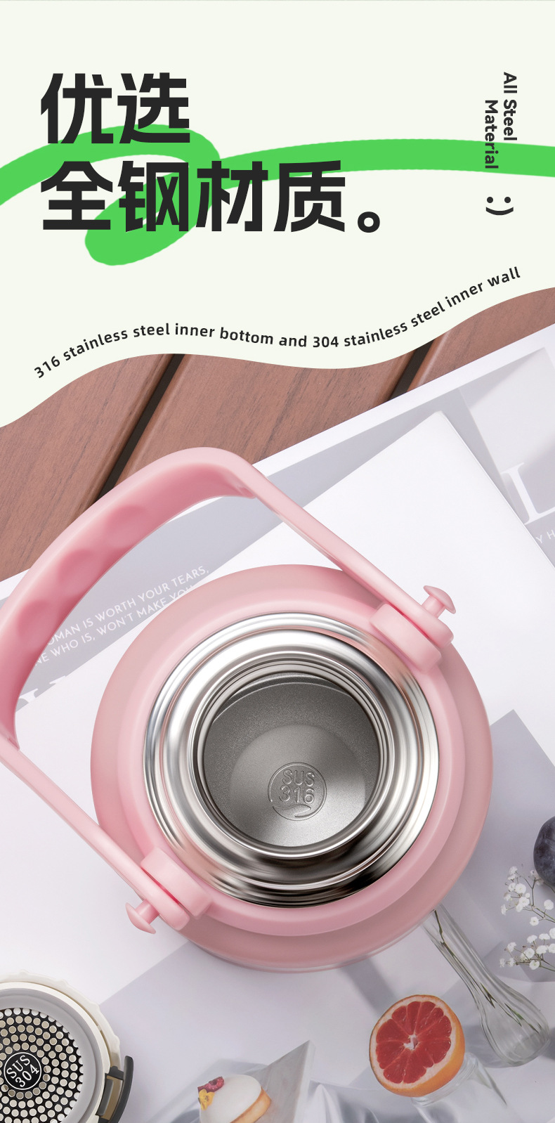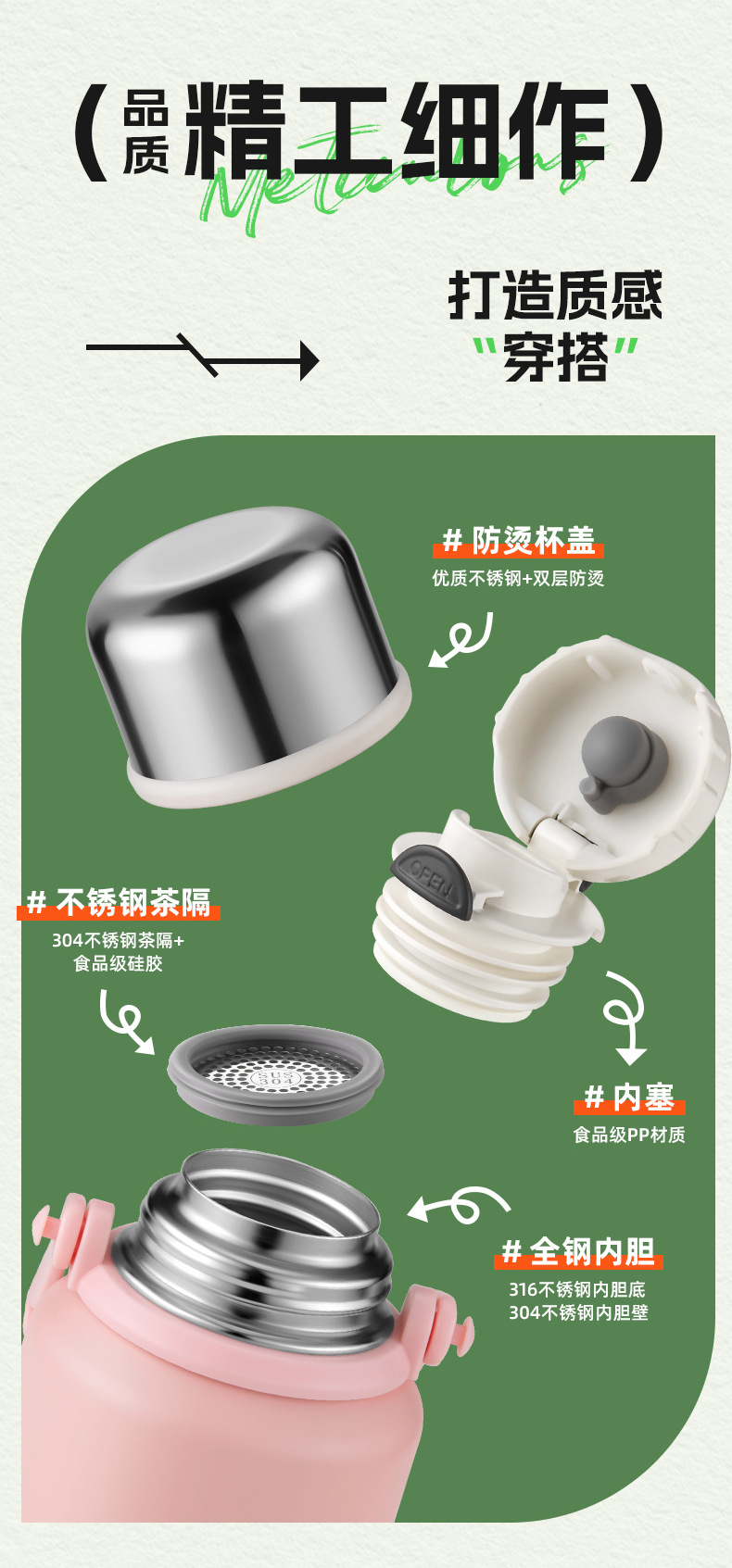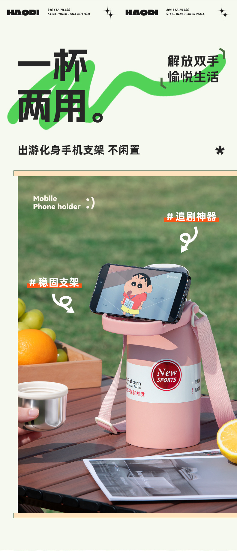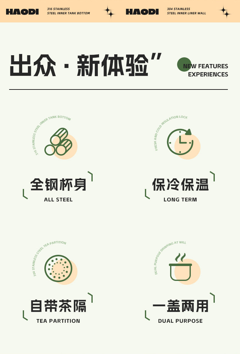 하오디 보온 물병 대용량 남녀공용 고급스러운 316 스테인리스 컵 학생용 야외용 냉수병
