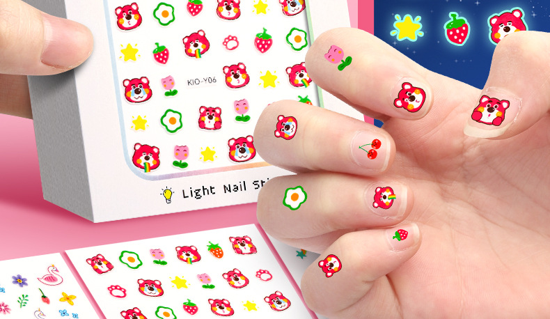 만화 어린이 패턴 빛나는 네일 스티커 빛나는 스티커 방수 네일 스티커 아기 어린이 스티커