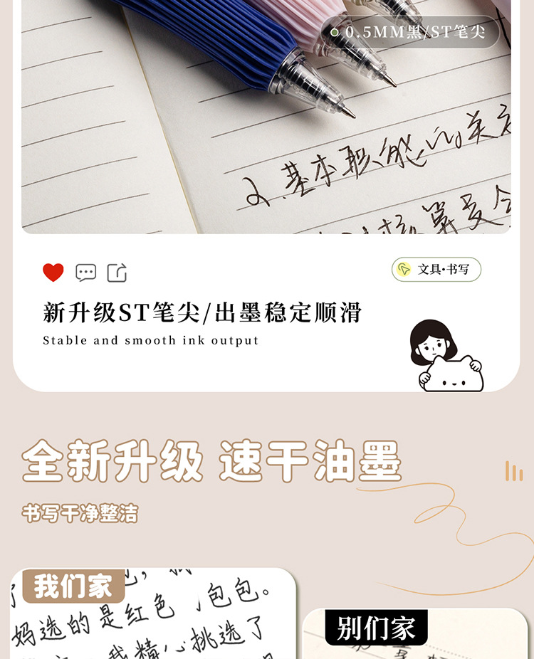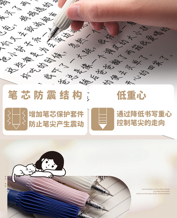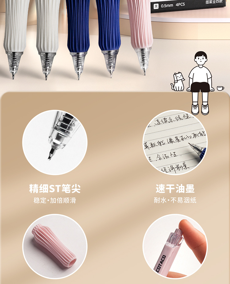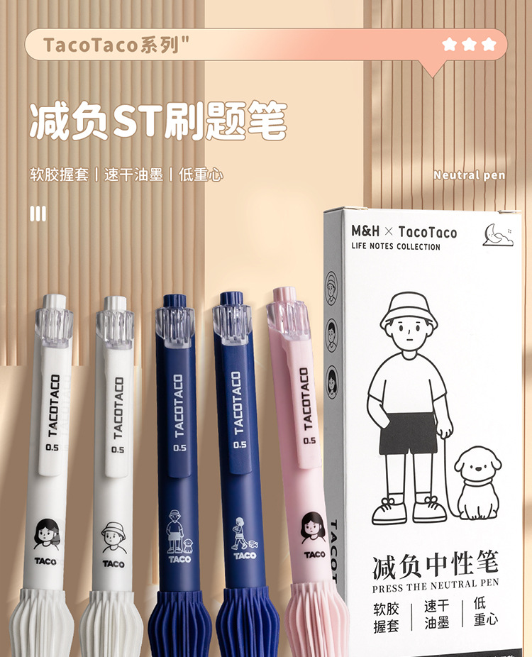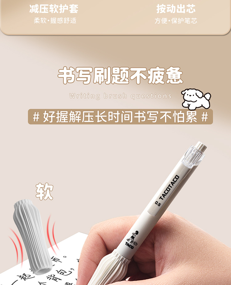 TacoTaco 부담 감소 젤 펜 학생 시험 ST 프레스 빠른 드라이 브러시 펜 소프트 그립 감압 블랙 펜