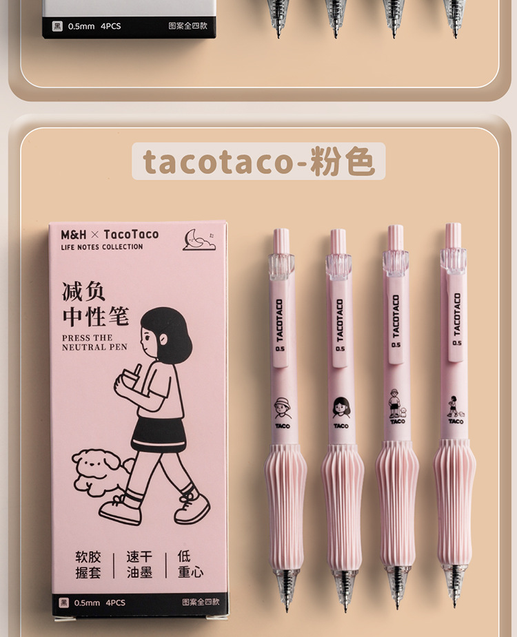 TacoTaco 부담 감소 젤 펜 학생 시험 ST 프레스 빠른 드라이 브러시 펜 소프트 그립 감압 블랙 펜스토어 가기