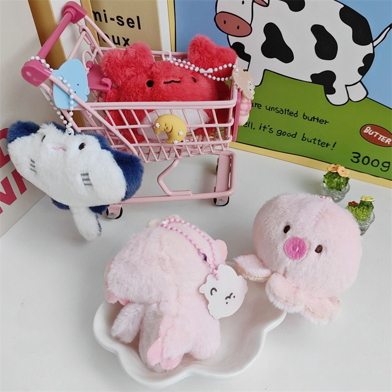 귀여운 해양 작은 동물 문어 육각형 드래곤 봉제 펜던트 만화 스케이트 작은 게 인터넷 축하 인형 키 체인스토어 가기