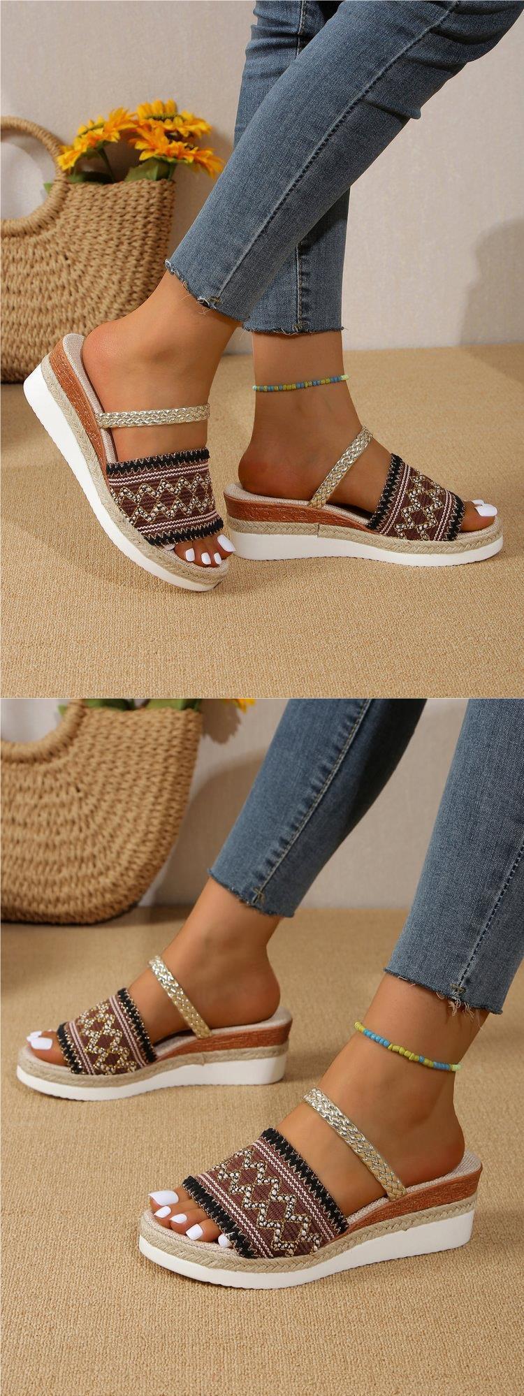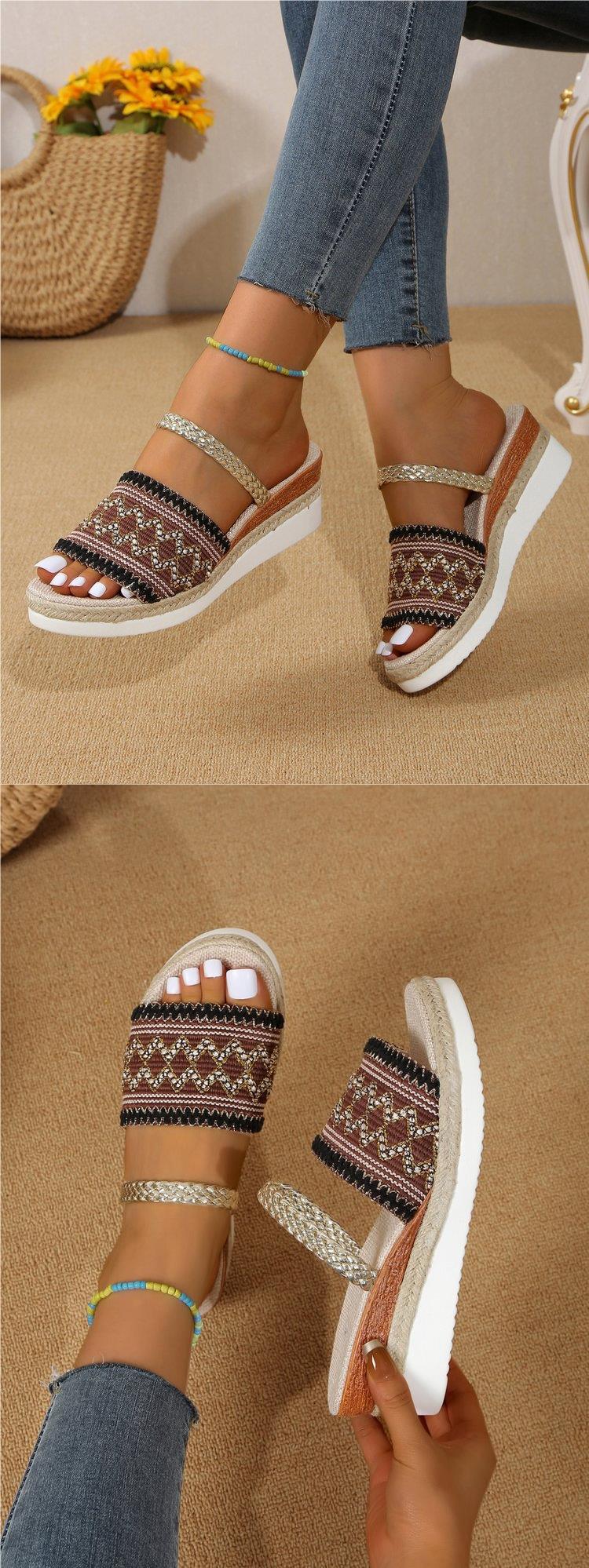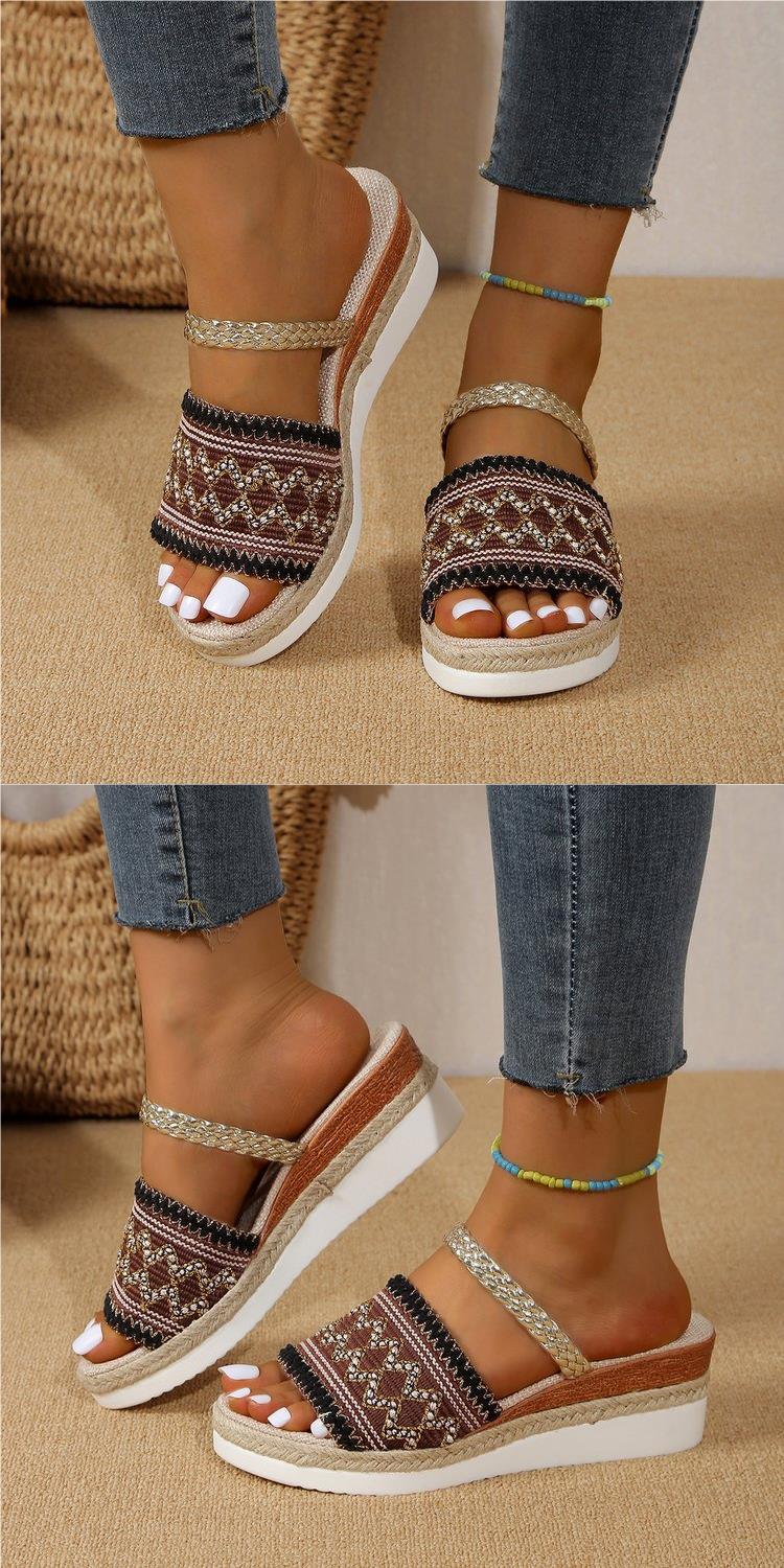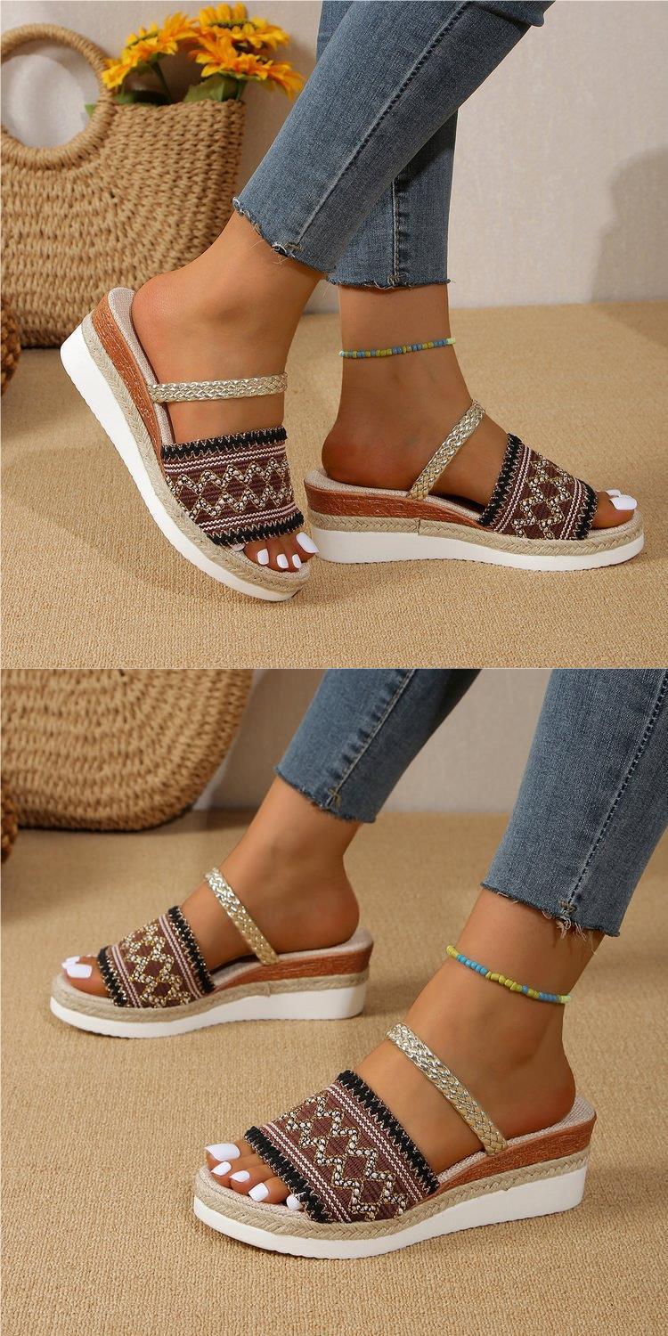 2024 년 여름 국경 간 대외 무역 쐐기 샌들 여성 유럽과 미국의 민족 스타일 플러스 사이즈 대마 로프 플랫폼 생선 입 캐주얼 샌들 여성스토어 가기