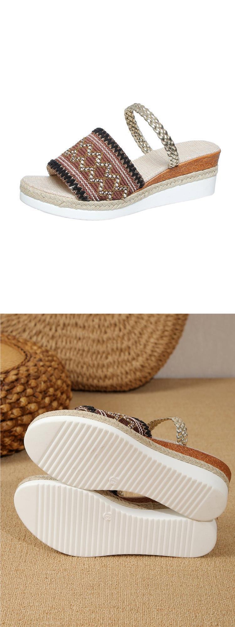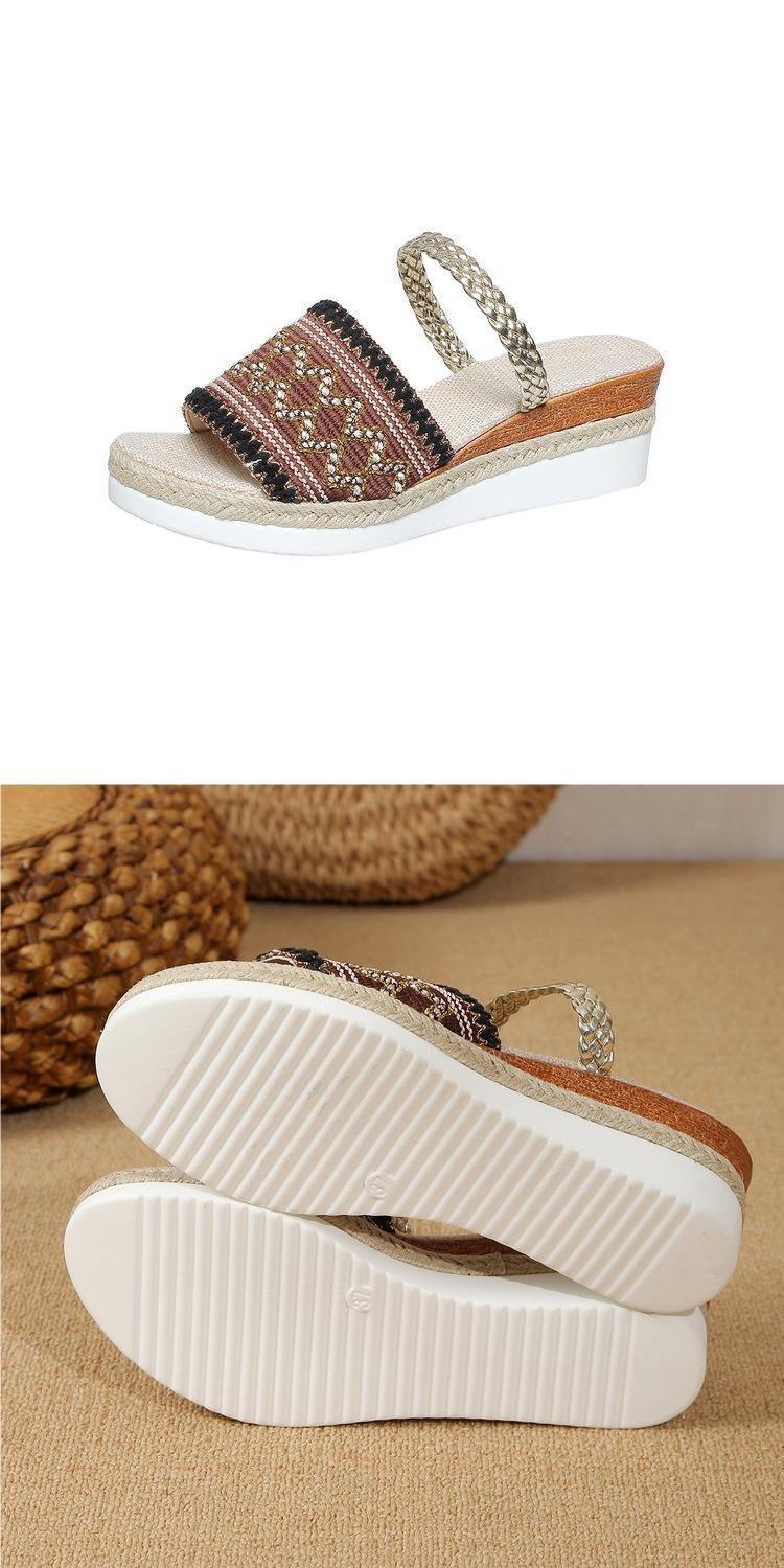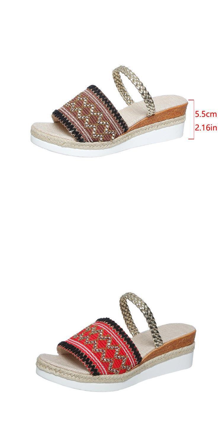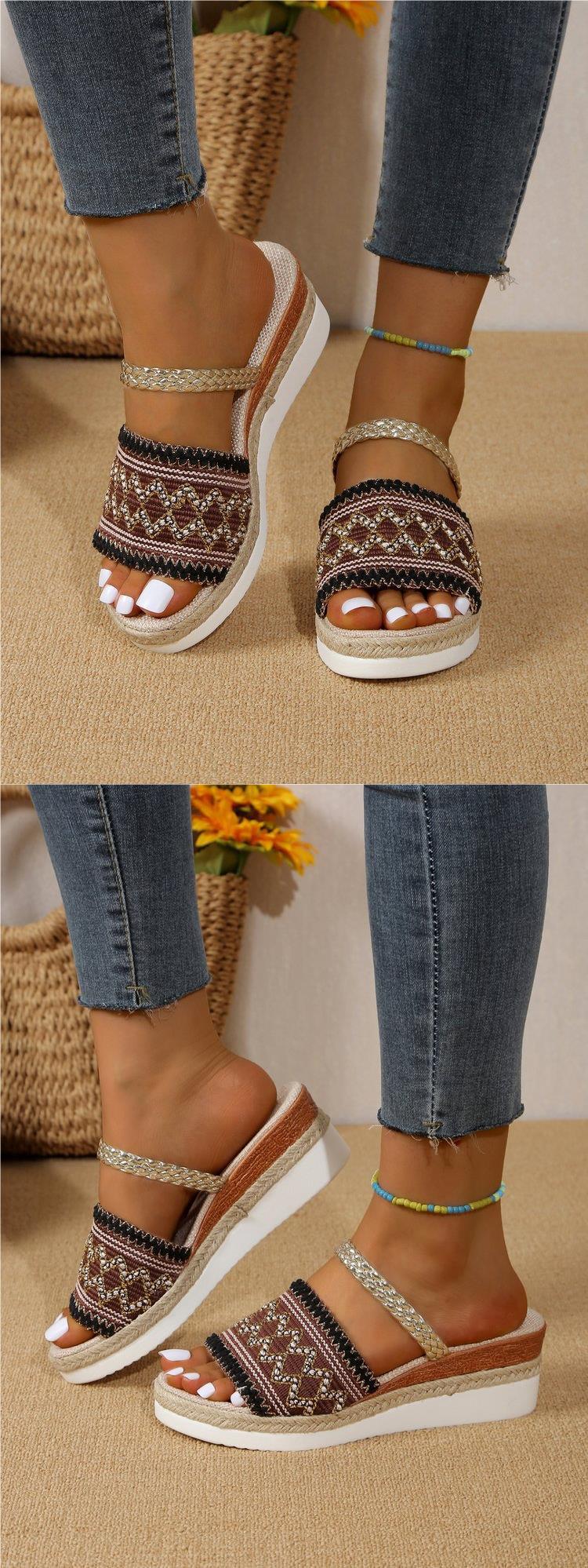2024 년 여름 국경 간 대외 무역 쐐기 샌들 여성 유럽과 미국의 민족 스타일 플러스 사이즈 대마 로프 플랫폼 생선 입 캐주얼 샌들 여성스토어 가기