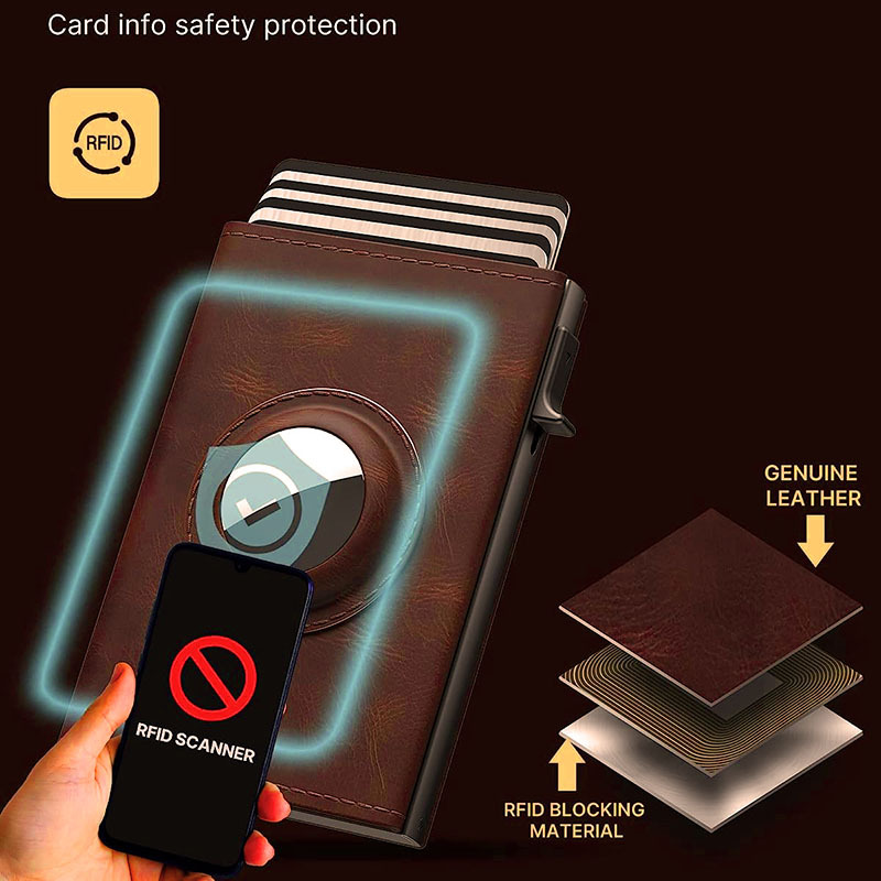 아마존 새로운 마이크로 화이버 오일 왁스 가죽 지갑 AirTag 3 배 자기 흡입 대용량 레트로 카드 케이스 rfid 도난 방지