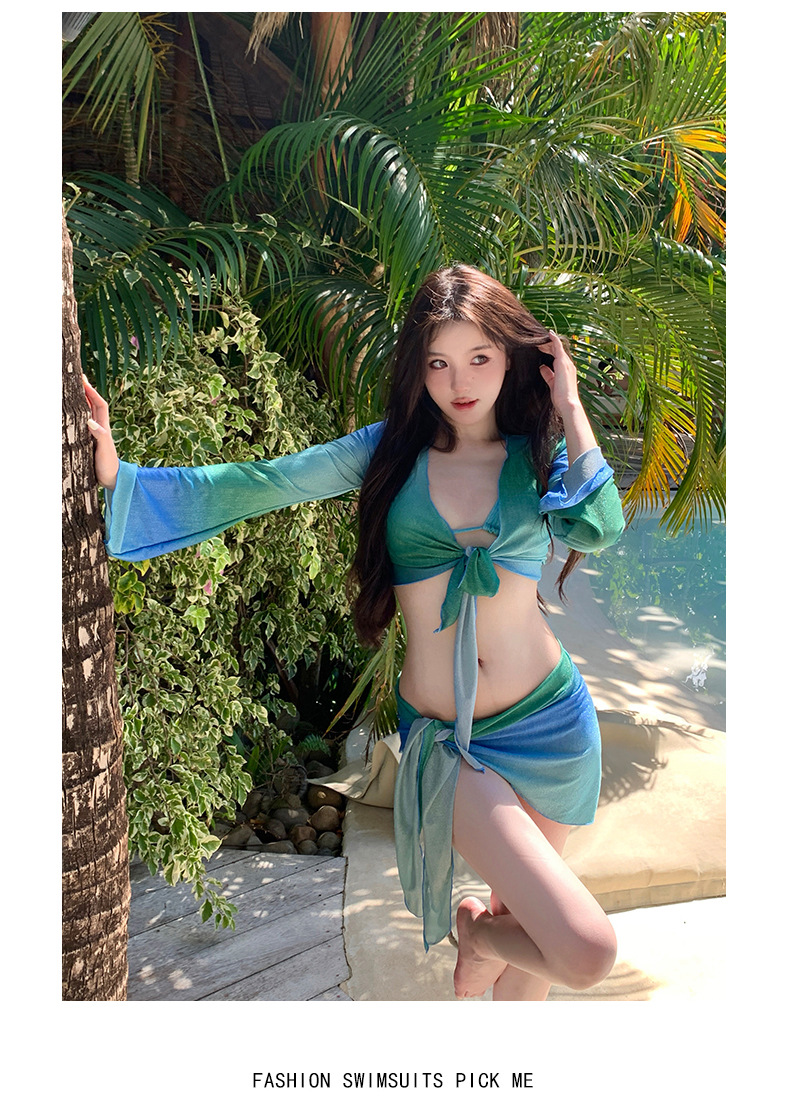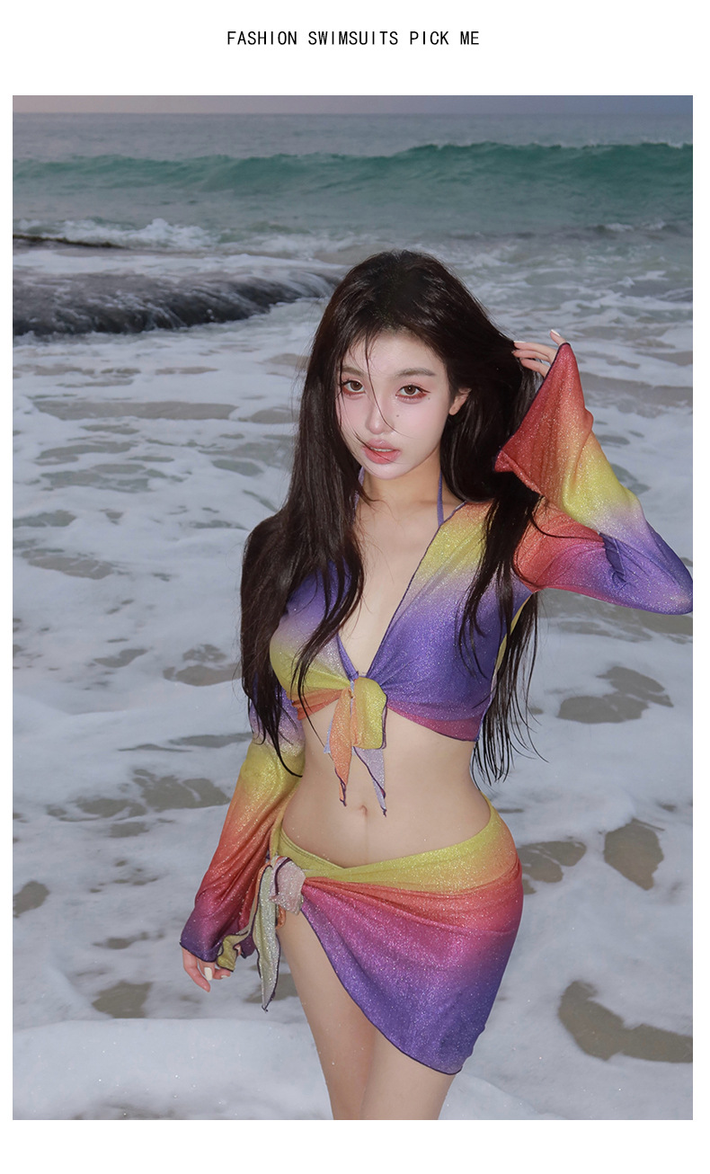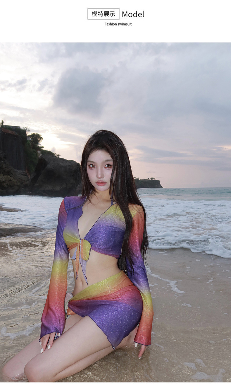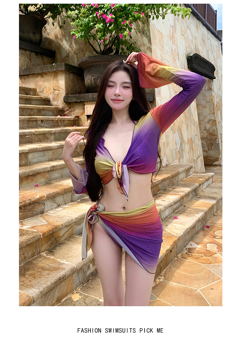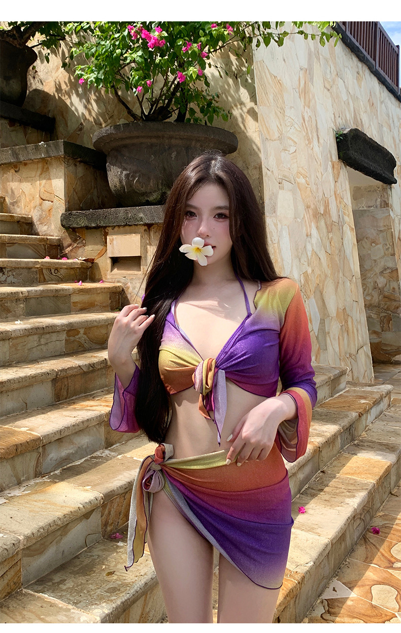 2024 년 새로운 비키니 4 피스 타이 다이 레트로 긴 소매 슬리밍 보수적 인 해변 스플릿 여름 여성을위한 순수한 욕망 수영복스토어 가기