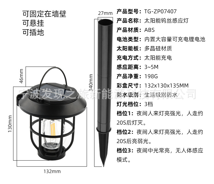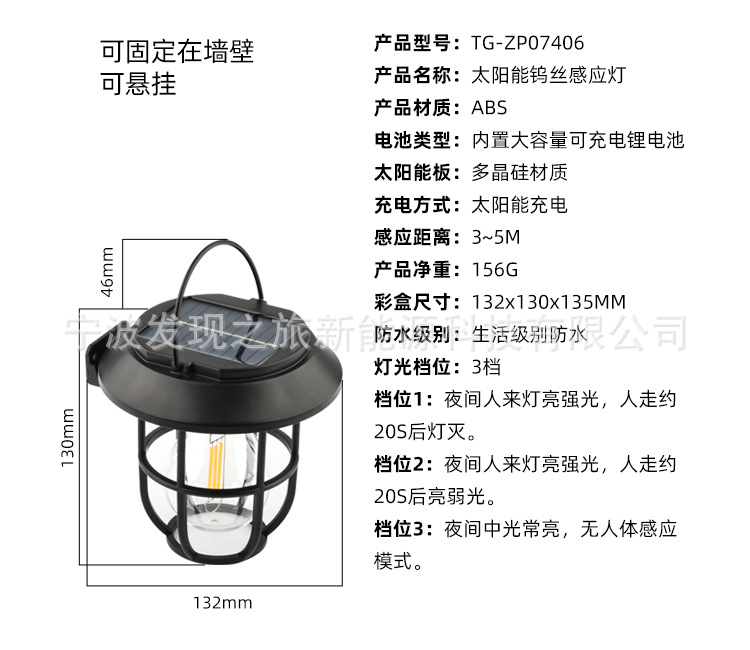 产品名称:太阳能钨丝感应灯