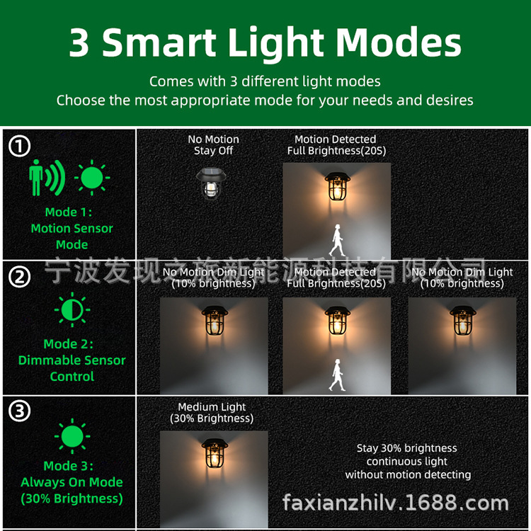 档位3:夜间中光常亮,无人体感应模式。