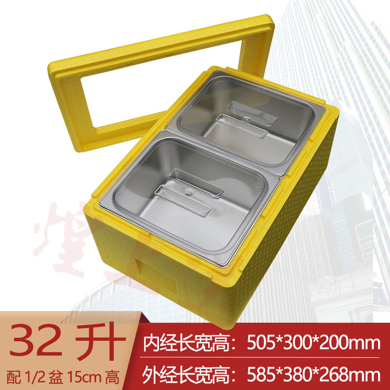 • 투명한 뚜껑이 있는 노란색 32리터 + 높이 15cm 세면대 1/1개, 얼음판 4개 포함