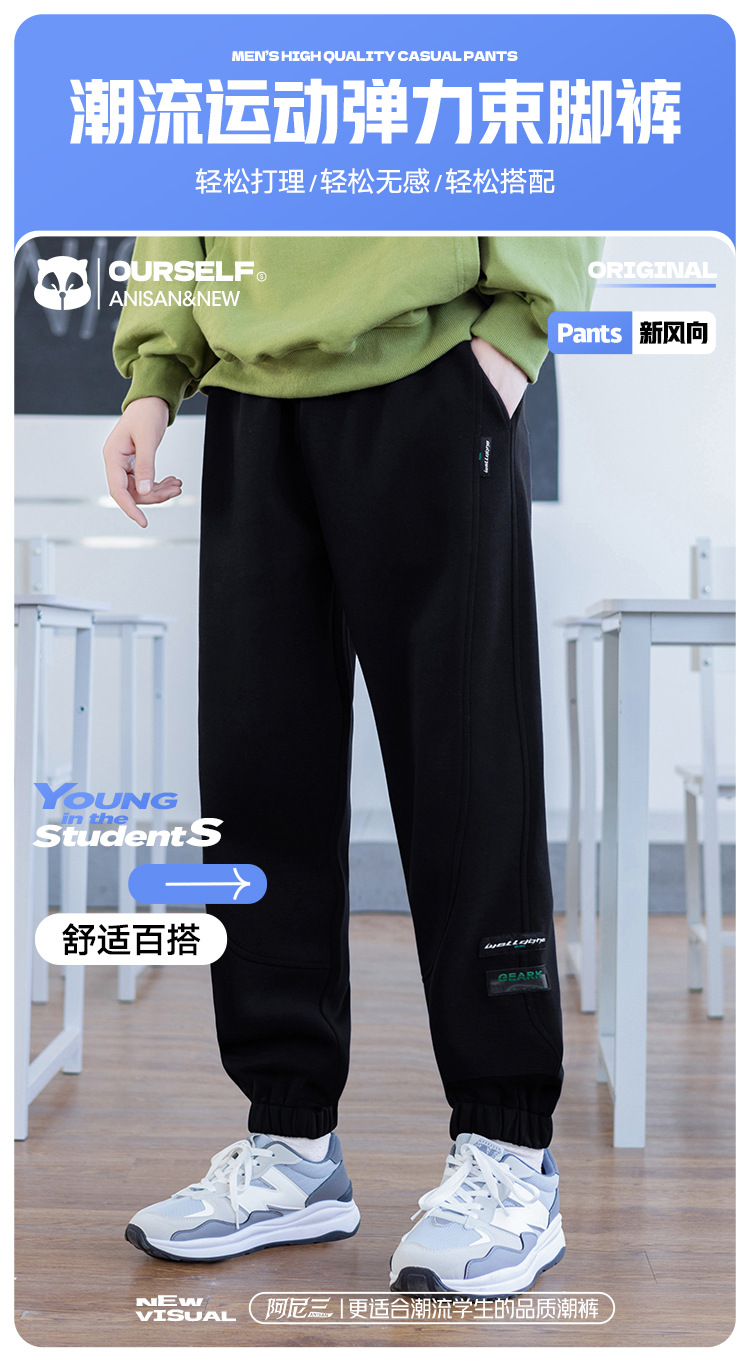 스포츠 바지 남자 봄과 가을 청소년 얇은 바지 2023 새로운 도착 빅 보이 올매치 학생 캐주얼 바지