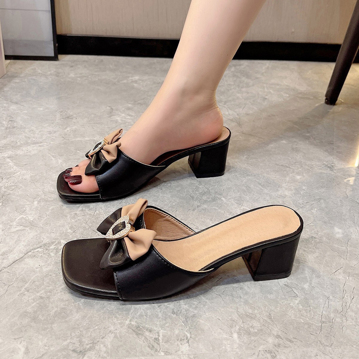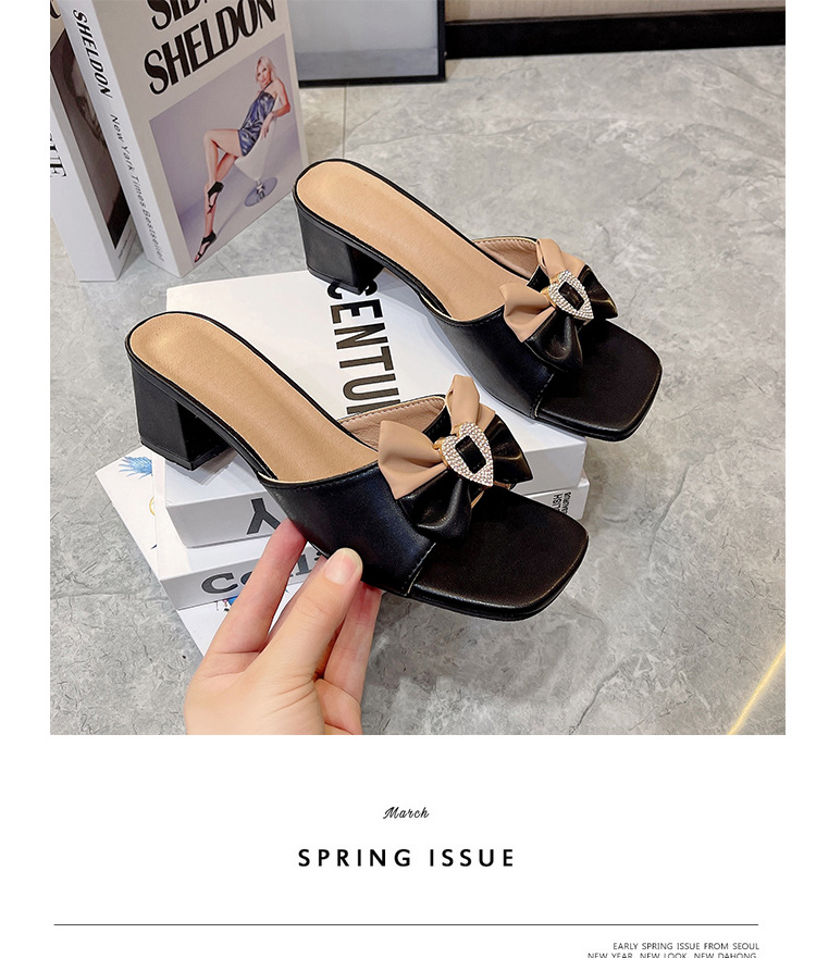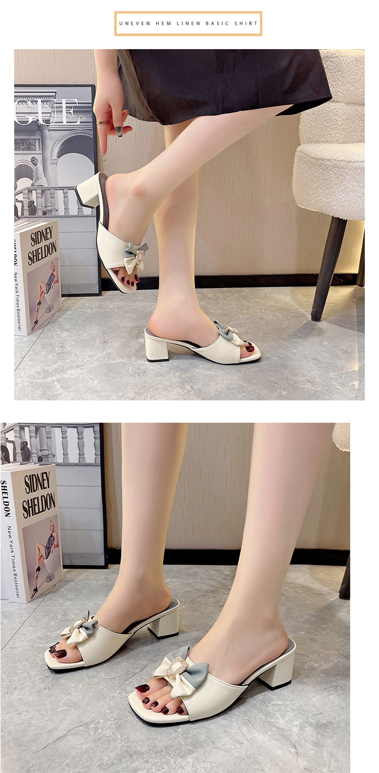 프랑스 샌들 2024 새로운 여성 패션 미드 힐 하프 드래그 활 한 단어 드래그 겉옷 스퀘어 헤드 대외 무역 플러스 사이즈스토어 가기