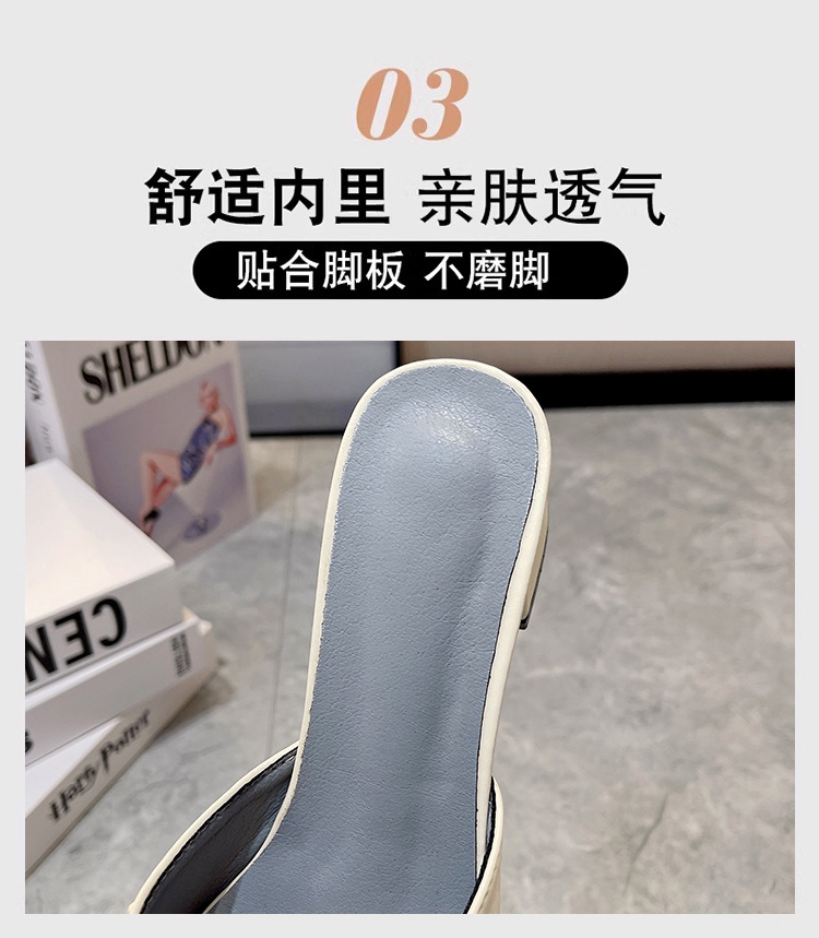프랑스 샌들 2024 새로운 여성 패션 미드 힐 하프 드래그 활 한 단어 드래그 겉옷 스퀘어 헤드 대외 무역 플러스 사이즈