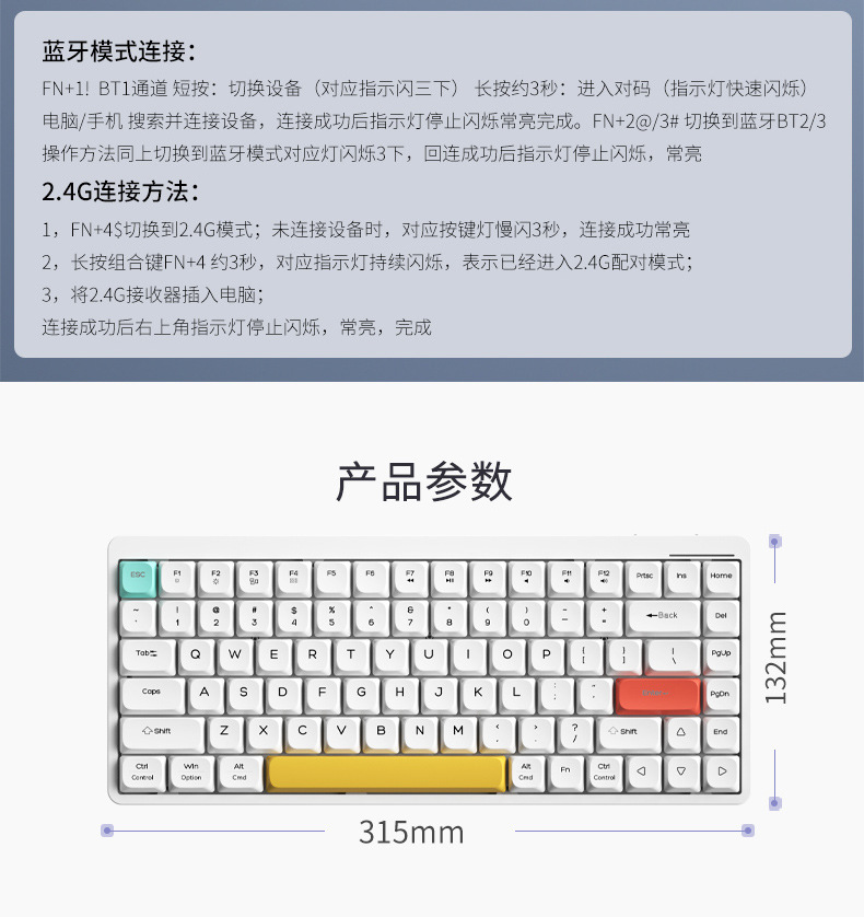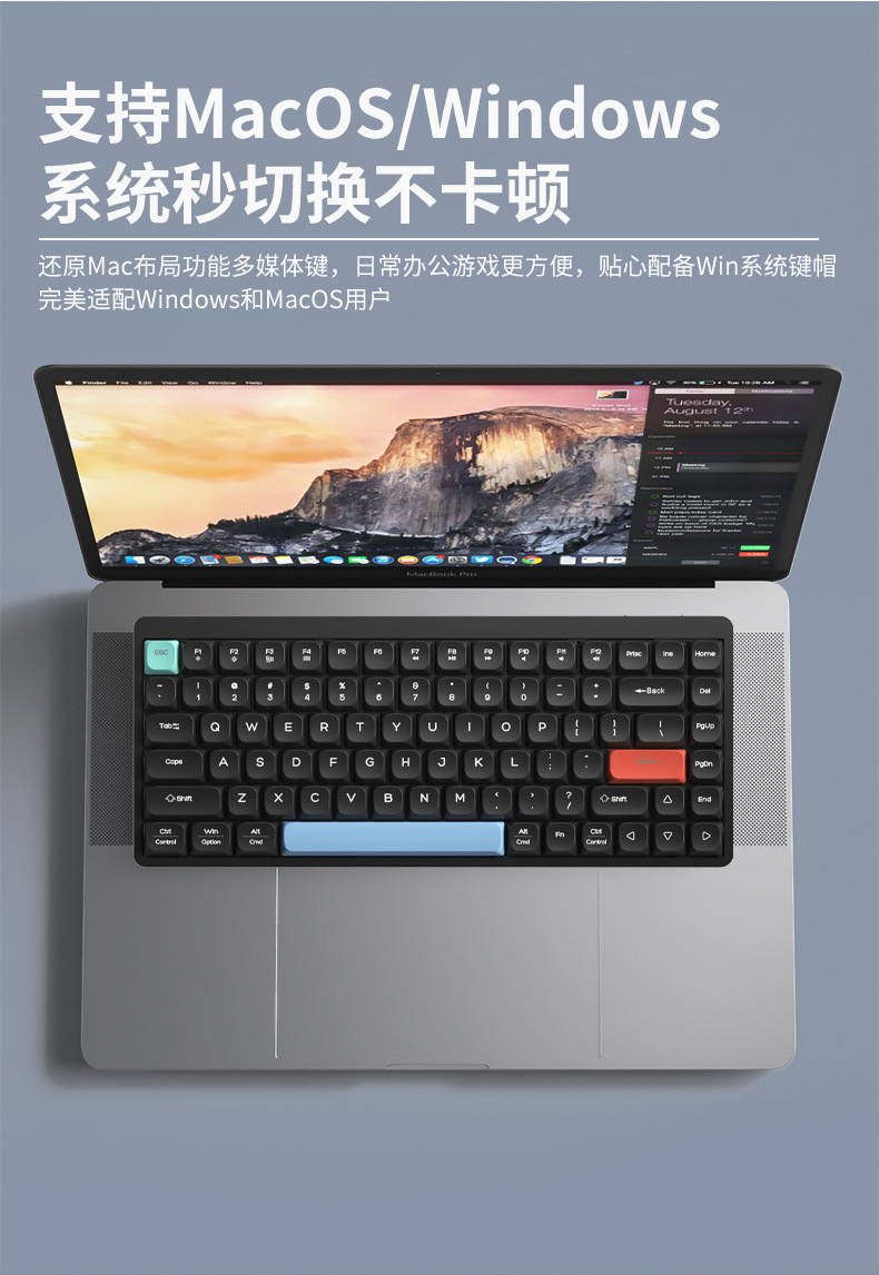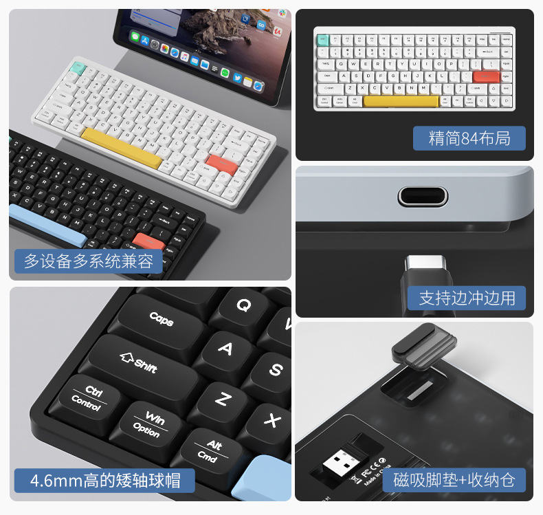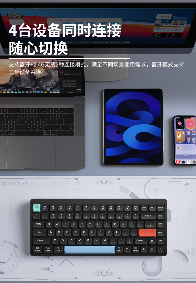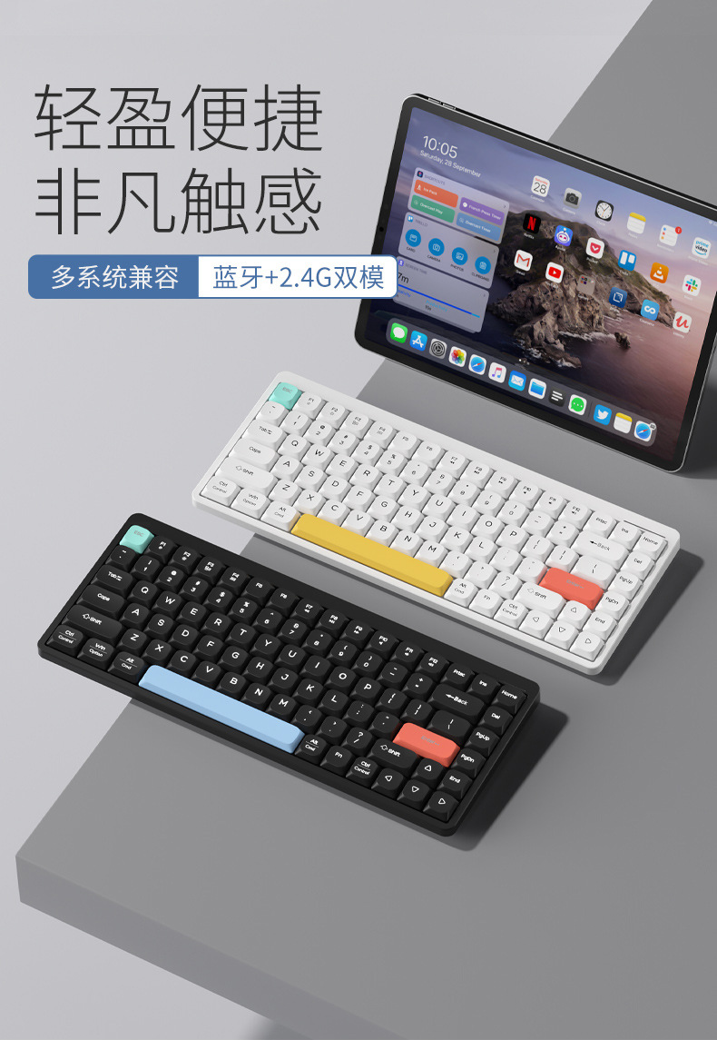 초박형 무선 키보드, 저소음 사무용 기계식 레드축, 평면형 블루투스 휴대용 듀얼모드스토어 가기