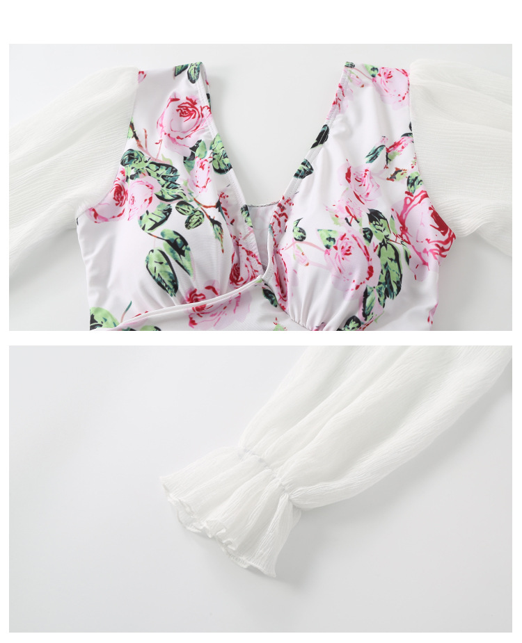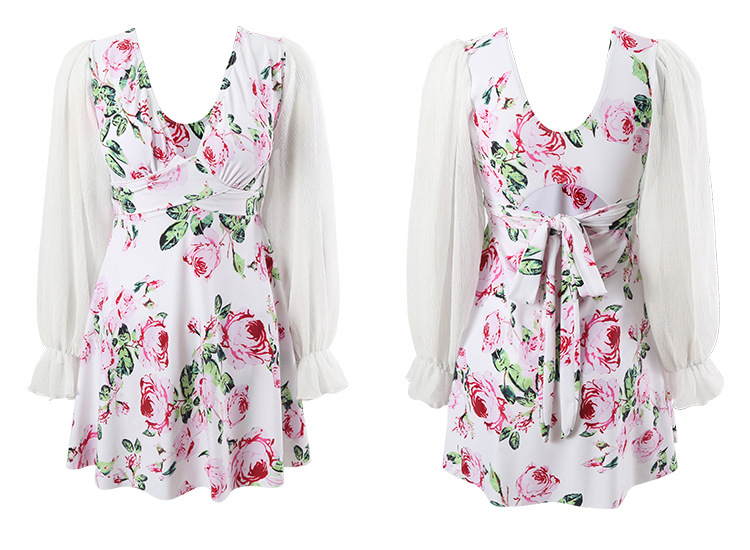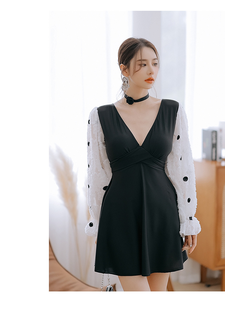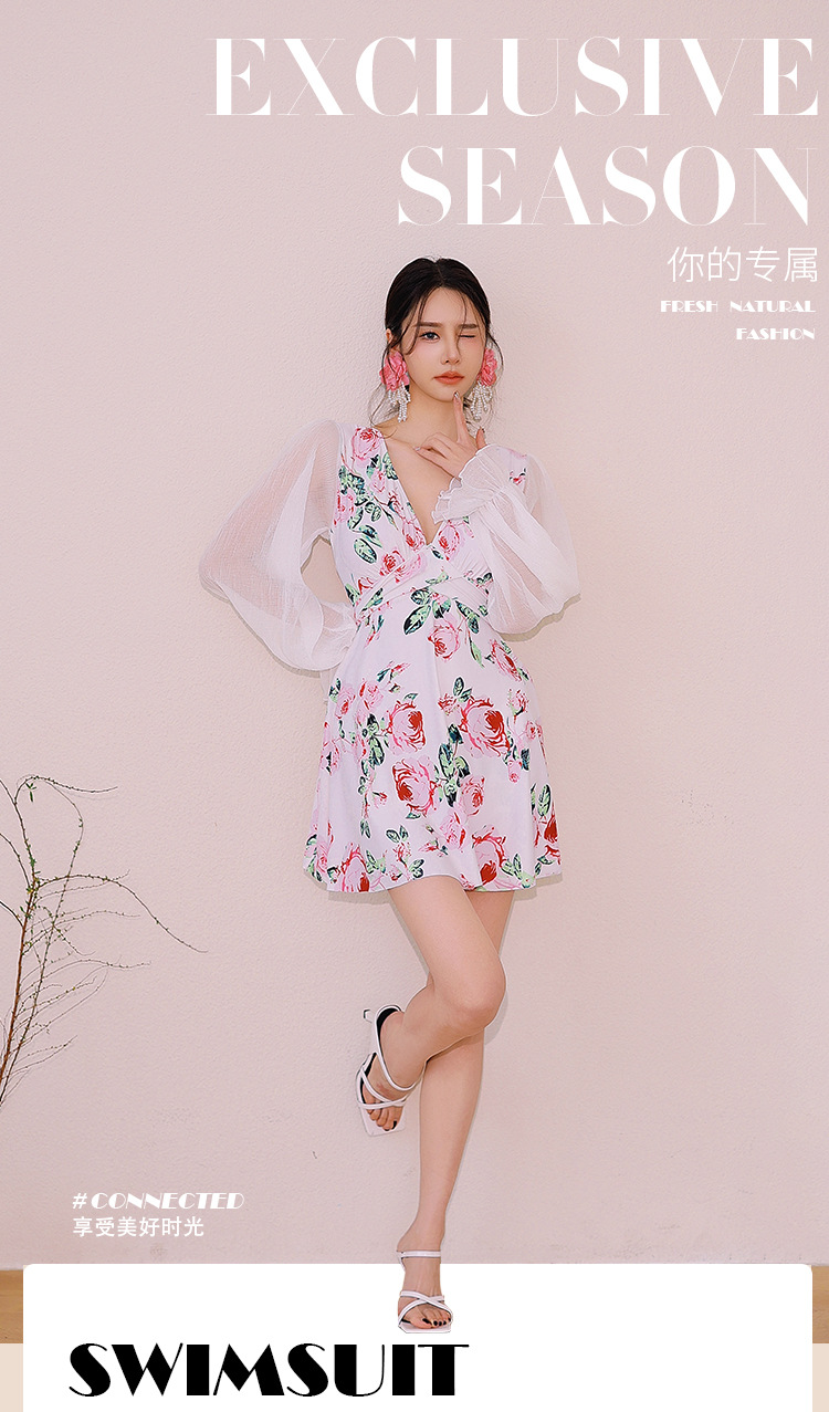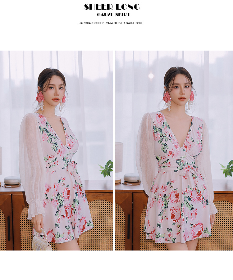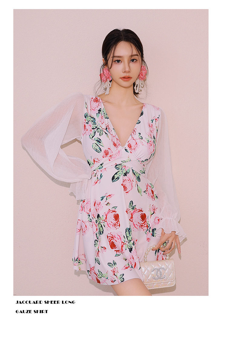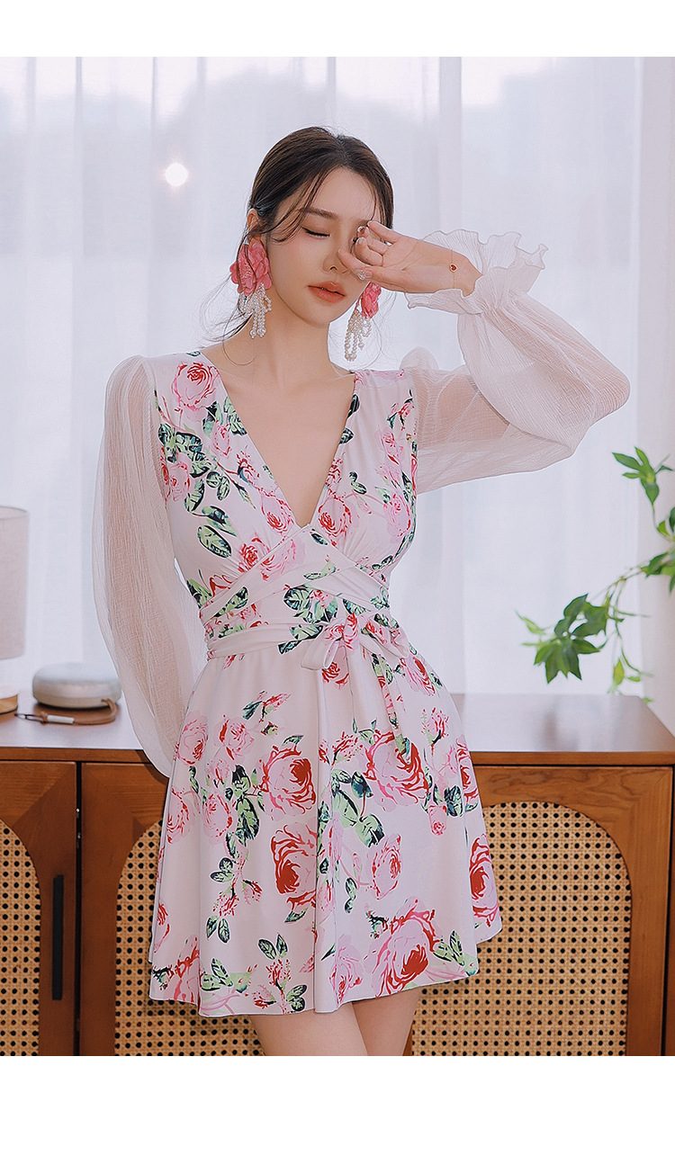 플러스 사이즈 수영복 여성 여름 검은 섹시한 V 넥 긴 소매 선 스크린 원피스 스커트 통통녀 배꼽이 달린 슬림 홀리데이 수영복.스토어 가기