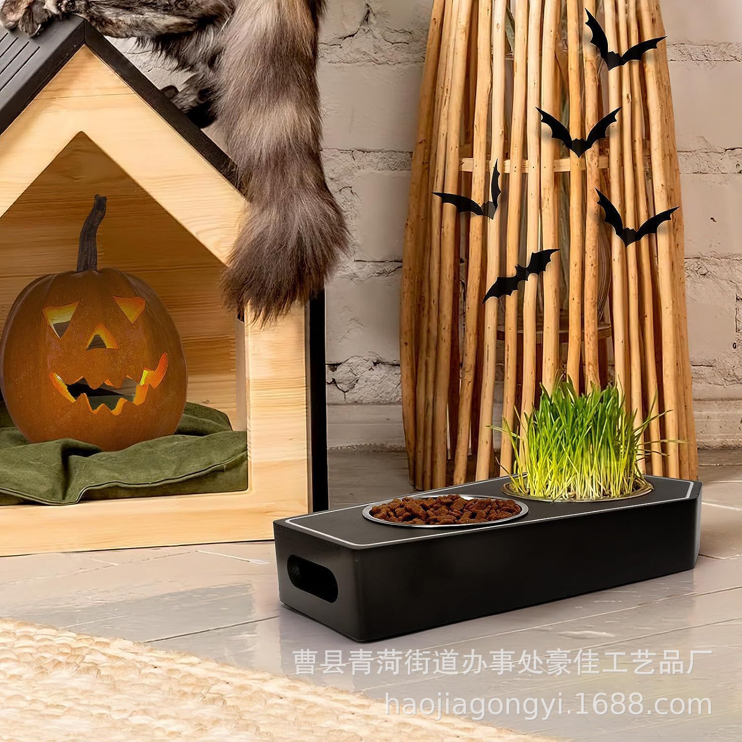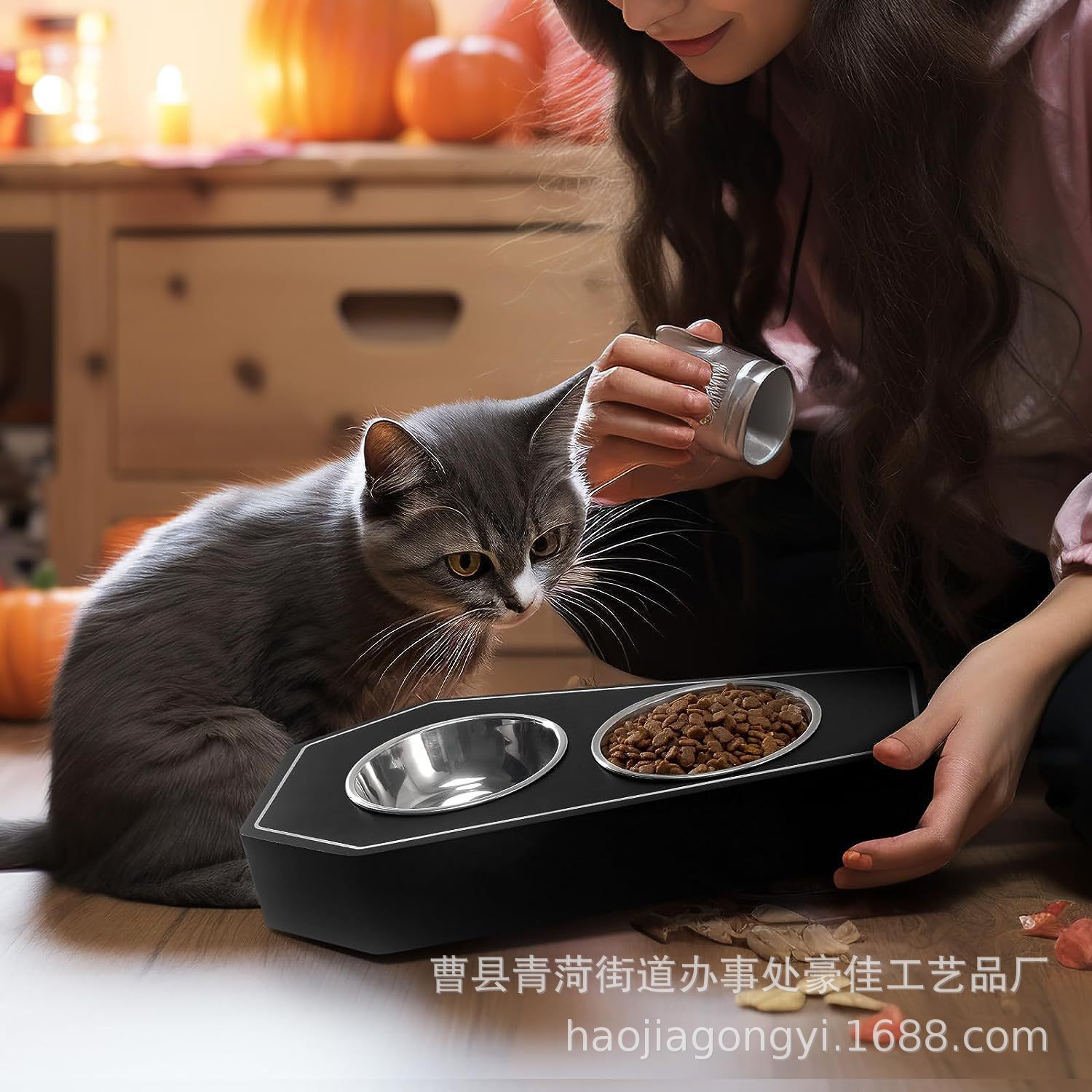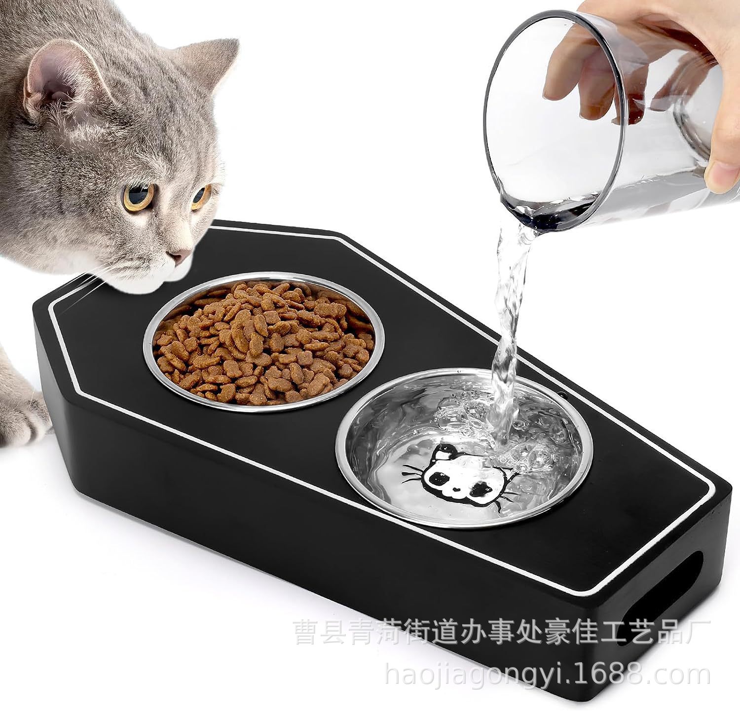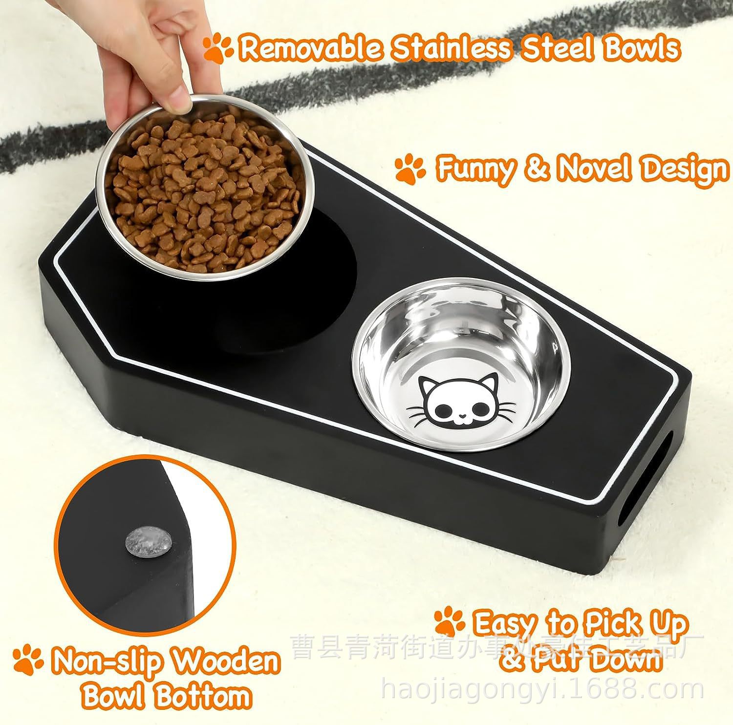 고딕 양식의 관 모양의 고양이 그릇 랙 할로윈 고양이 마시는 물 피더 나무 참신 해골 고양이 먹이 그릇