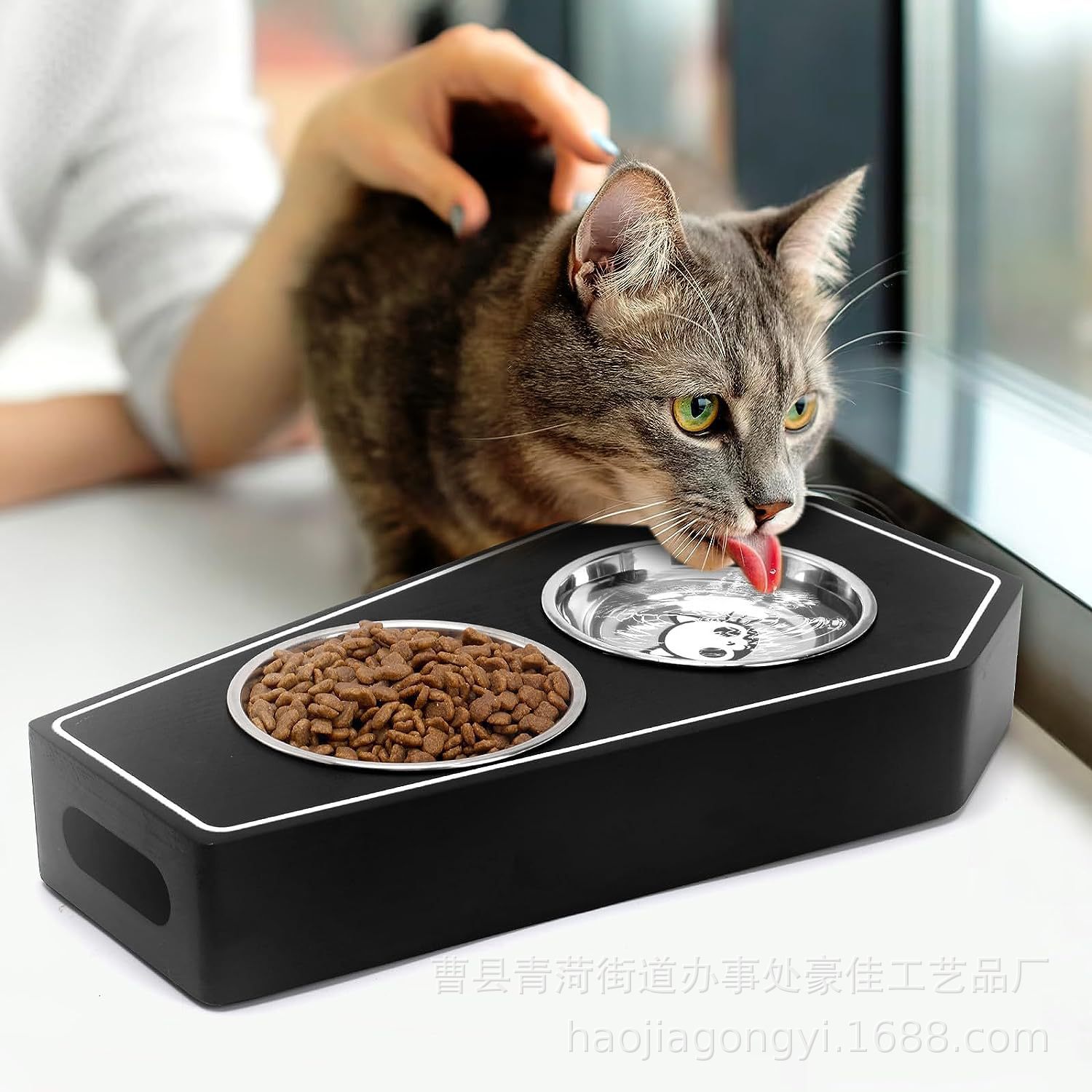 고딕 양식의 관 모양의 고양이 그릇 랙 할로윈 고양이 마시는 물 피더 나무 참신 해골 고양이 먹이 그릇스토어 가기