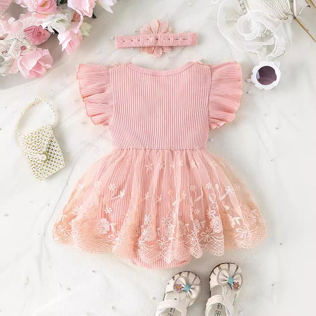 Baopin 아동복 여름 유럽과 미국의 국경 여성 아기 토끼 옷 구덩이 메쉬 꽃 활 제트 헤드웨어스토어 가기