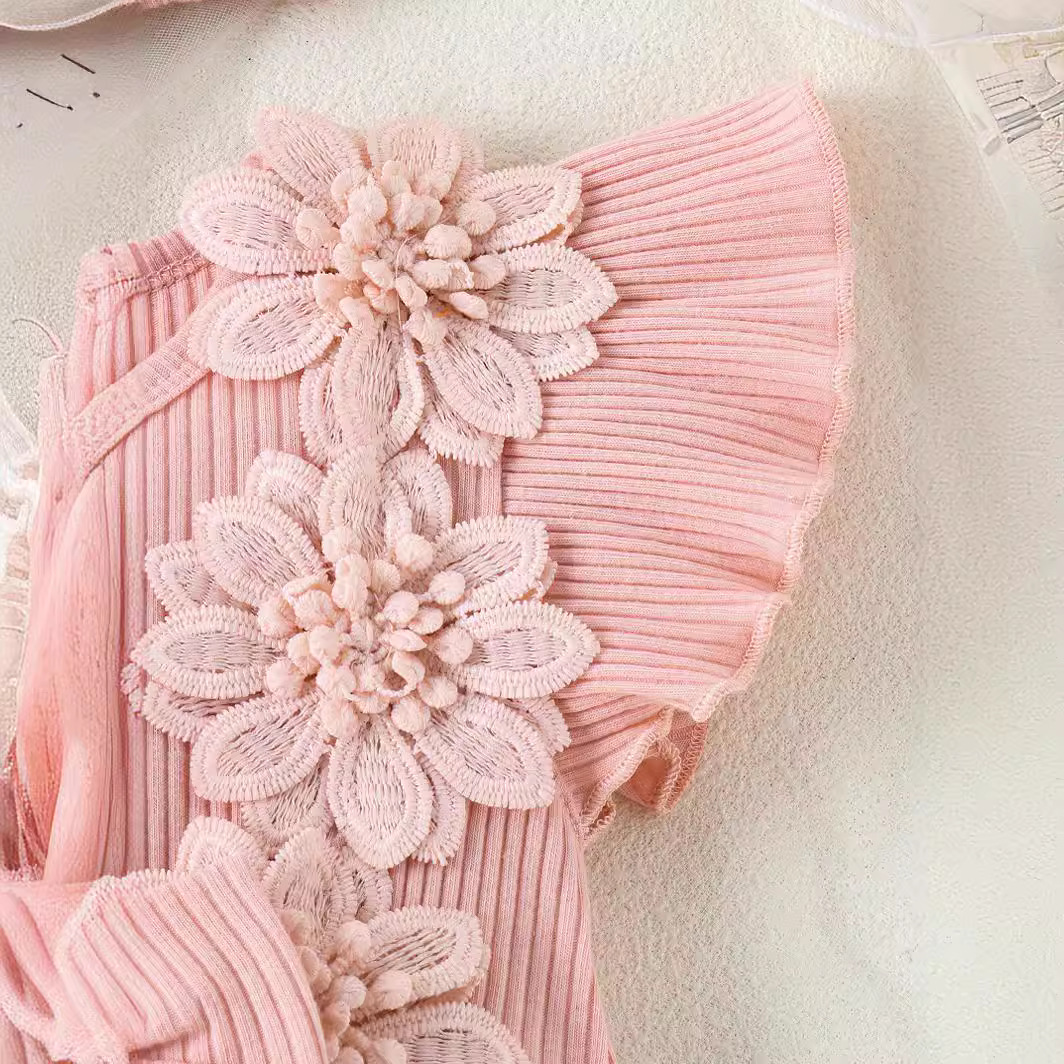 Baopin 아동복 여름 유럽과 미국의 국경 여성 아기 토끼 옷 구덩이 메쉬 꽃 활 제트 헤드웨어