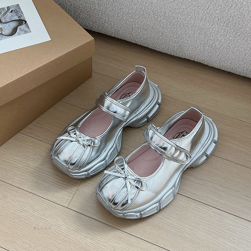 화이트 라운드 발가락 레트로 프랑스 두꺼운 밑창 메리 제인 신발 여성의 2024 년 새로운 여름 올 매치 발레 신발스토어 가기
