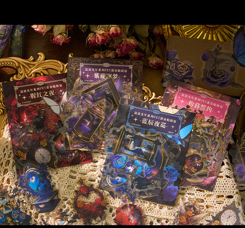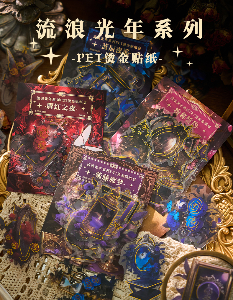 초기 거품 애완 동물 청동 스티커 가방 방황 라이트 년 시리즈 복고풍 고가의 손 계정 DIY 장식 재료 스티커