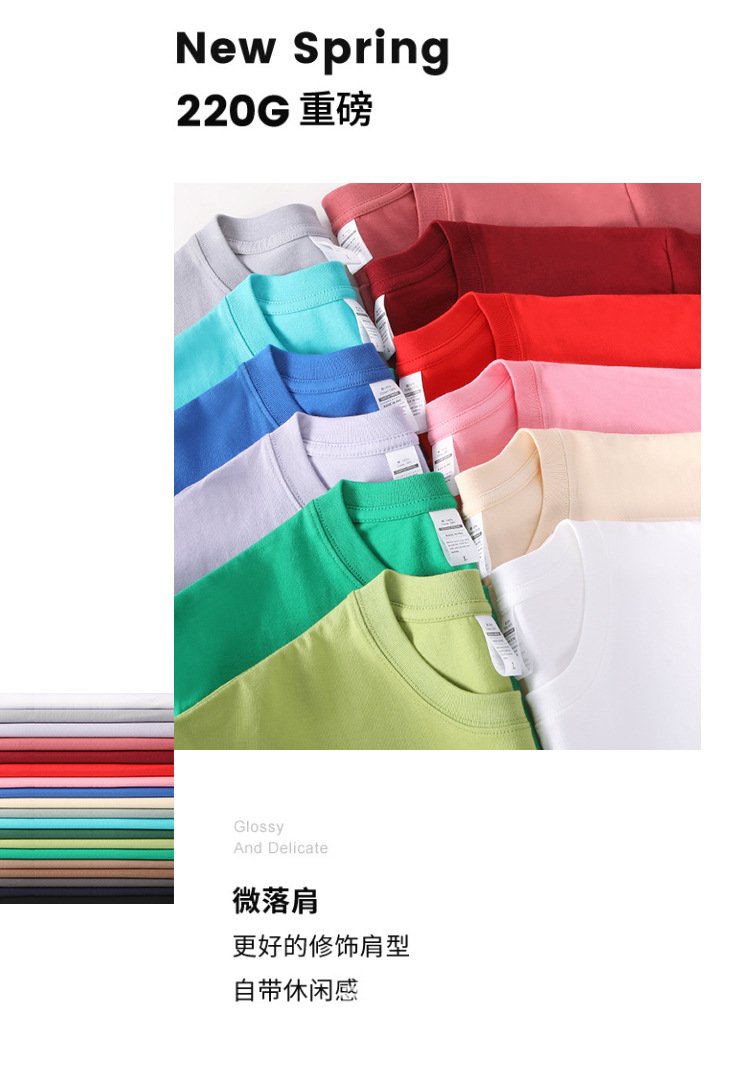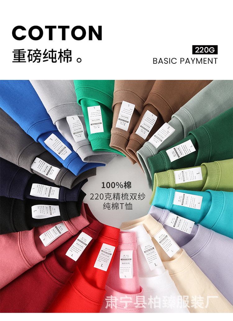 220g 순면 트렌드 순수한 흰색 반소매 어깨 짧은 소매 티셔츠 남성용 둥근 목 느슨한 내부베이스 셔츠스토어 가기