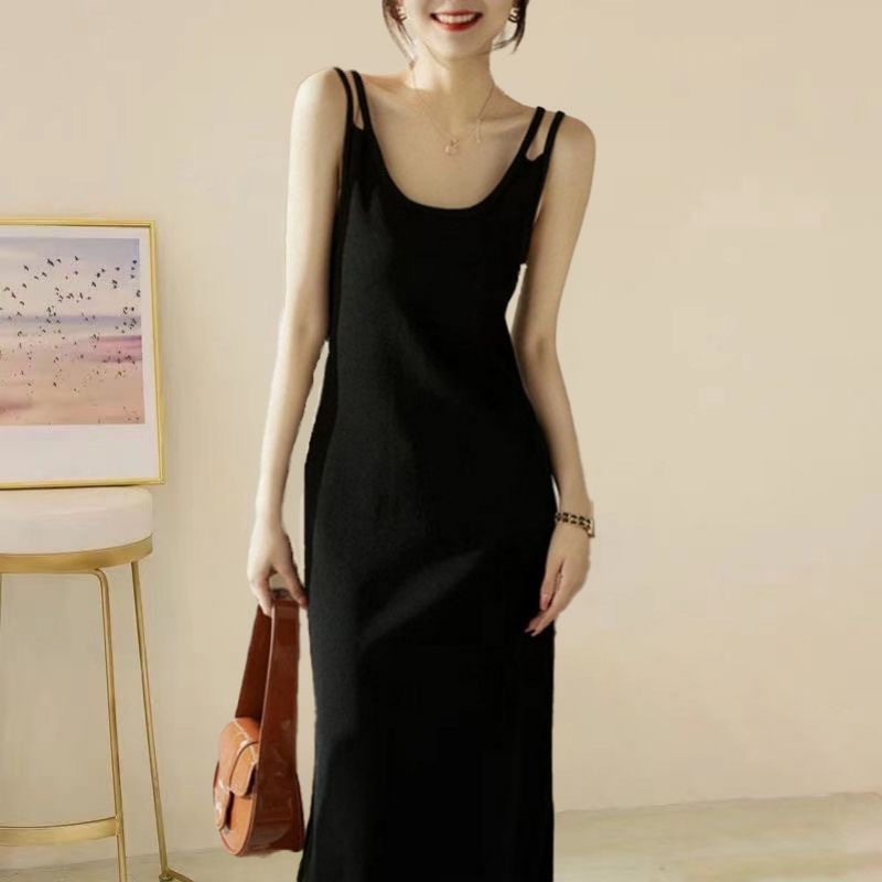 여름 새로운 슬링 원피스 여성 솔리드 컬러 패션 슬림 원피스 캐주얼 올 매치 느슨한 복용량 원피스