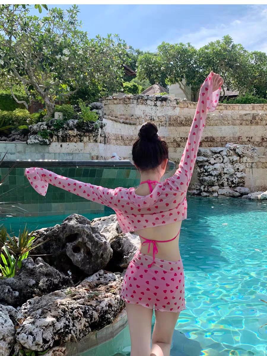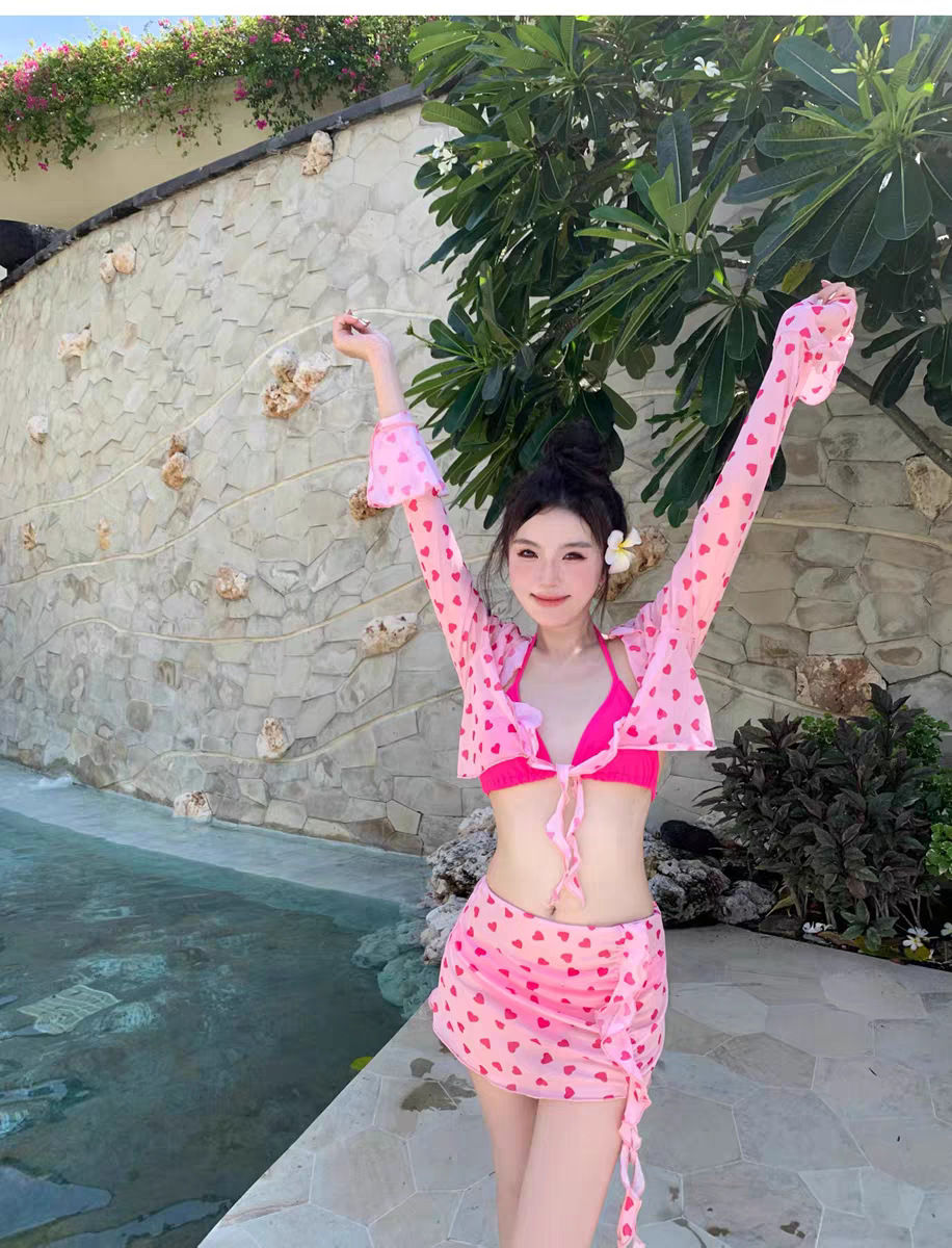 2024 새로운 여름 핑크 소녀 4 피스 비키니 수영복 여성 스플릿 스트랩 스커트 스파 휴가 수영복스토어 가기
