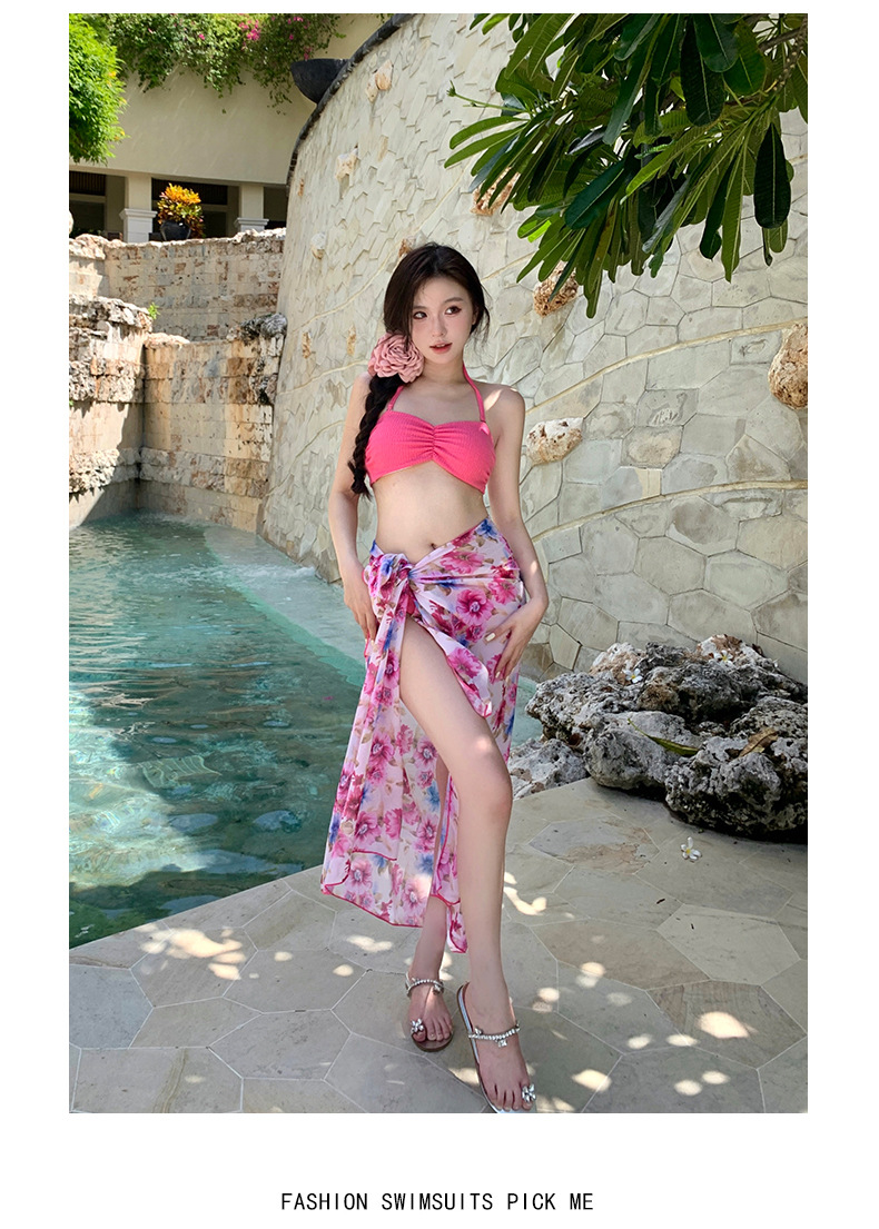 비키니 수영복 여성 2024 년 새 해변 휴일 3 피스 세트 섹시한 보수적 순수한 욕망 스파이스 소녀 분할 수영복 여름